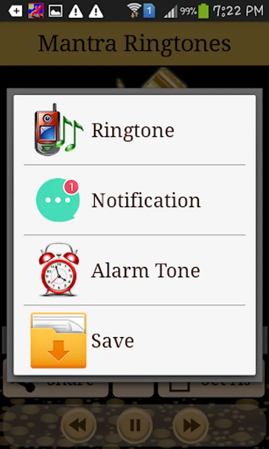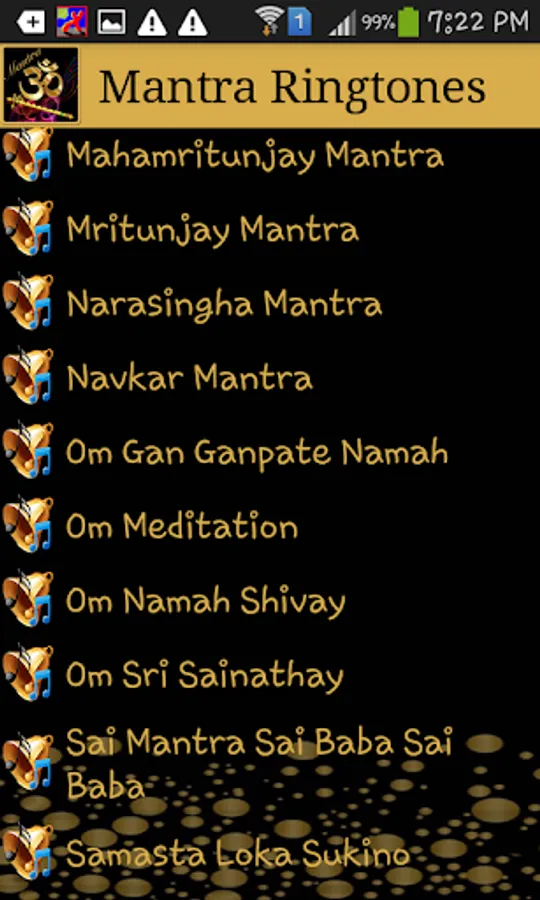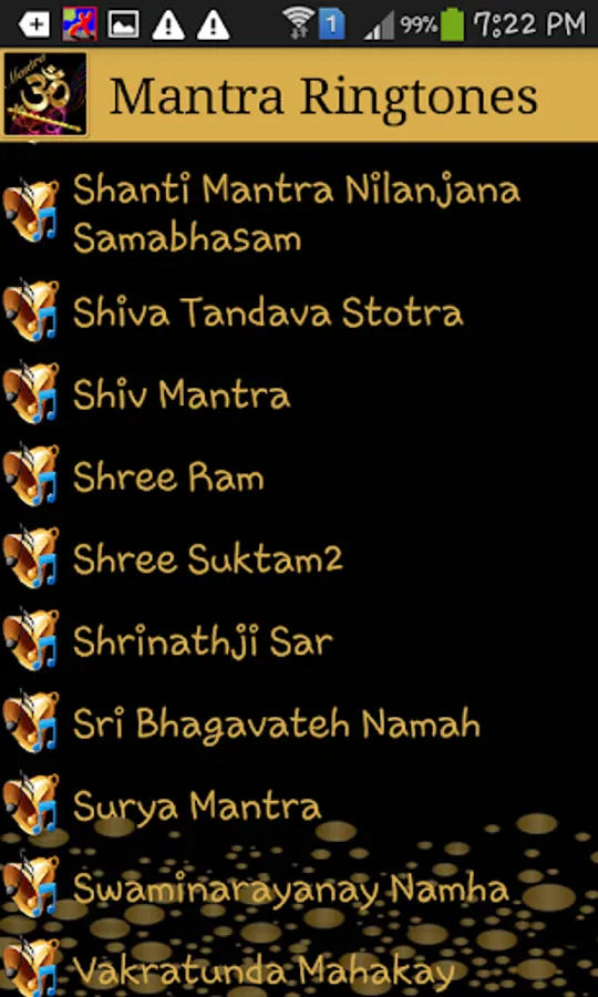 Mantra Ringtones application is collection of mantra of all hindu god and goddess,This app is for all religious people who want to set ring,alarm and notification sound as a mantra in mobile phone.