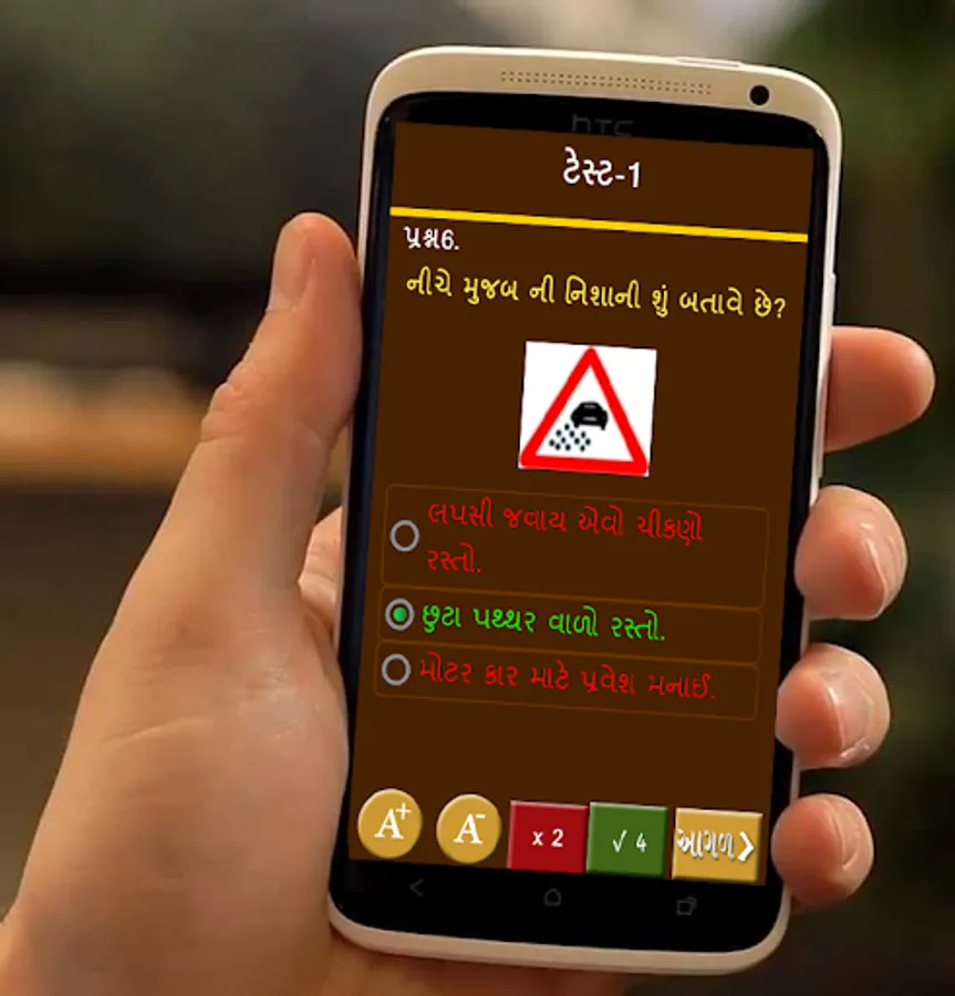 RTO Exam in Gujarati App is very useful to obtain driving license from RTO within Gujarat,All RTO Office conduct theory exam of driving license on computer base.It is also useful for Learning License of Light Multirole Vehicle (LMV), Heavy Motor Vehicle (HMV).Here we have give two mode Learning and Test mode for you to be aware about RTO exam and remove fear of failing and pass your RTO Driving license Test with full confidence .