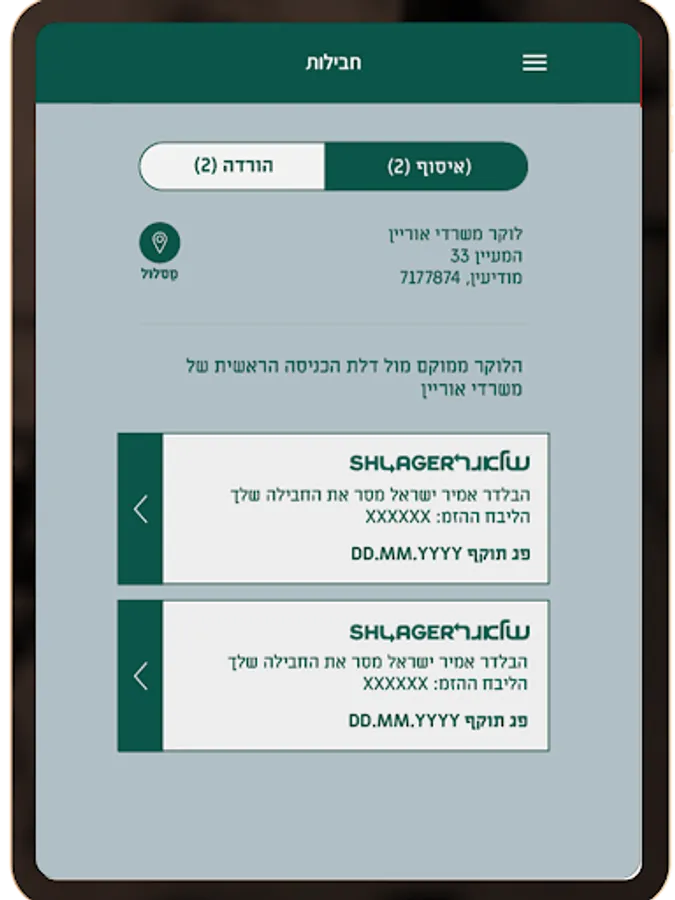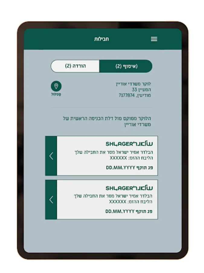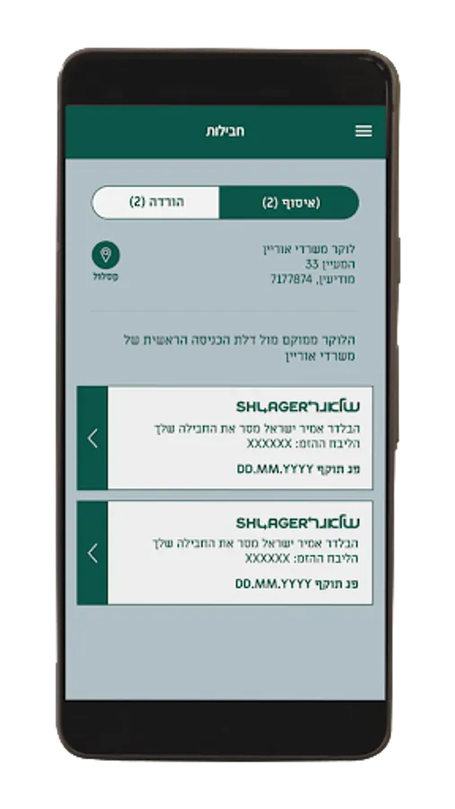 The Shlager app gives you access to the locker where your package was delivered. In the Shlager application you will find all the data of the collected packages and packages waiting to be collected. In addition, the Shlager app will remind you when the package is ready for collection or if there are still packages waiting and not yet collected.