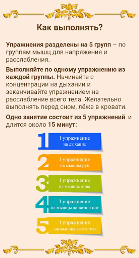 More than 100 years ago, a world-renowned professor Edmund Jacobson proved that complete relaxation of body muscles relieves nervous and psycho-emotional stress and calms the psyche.