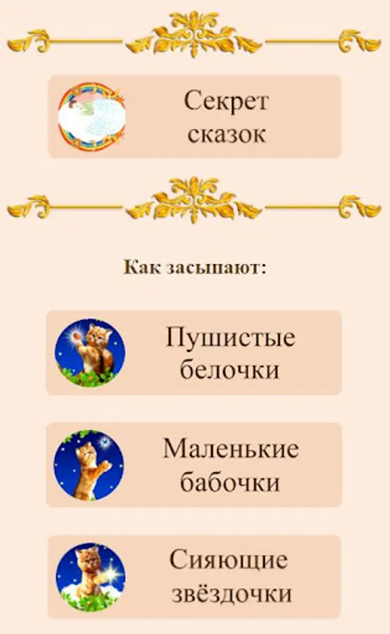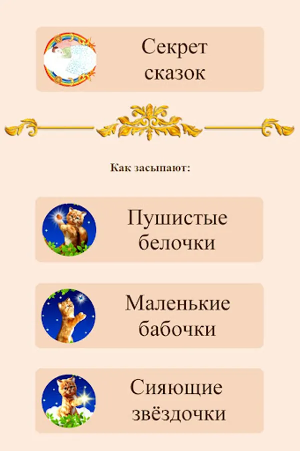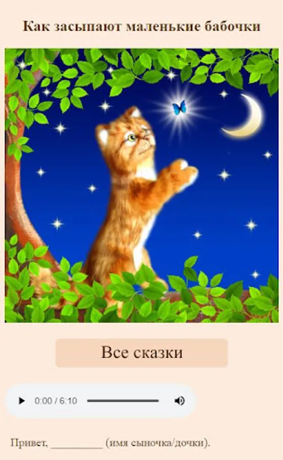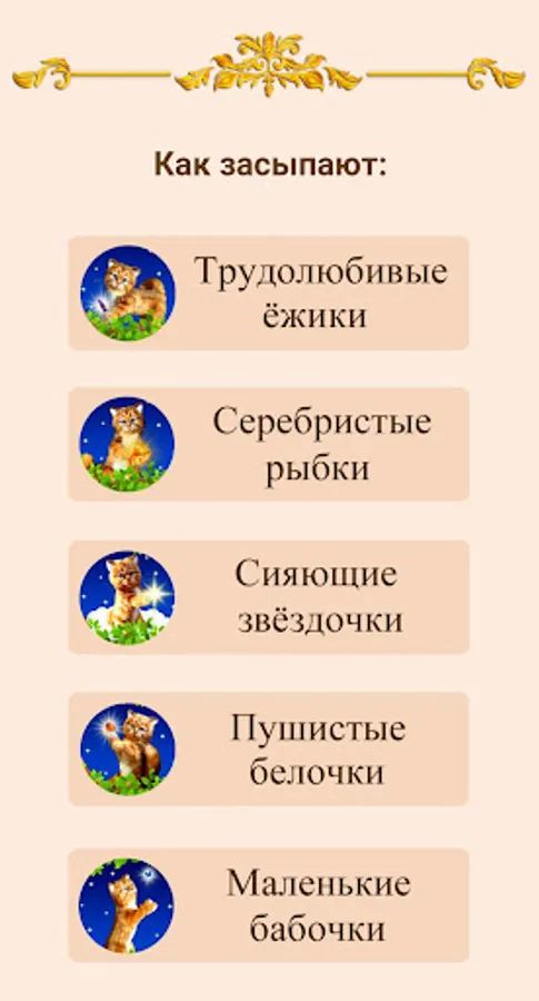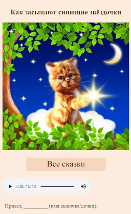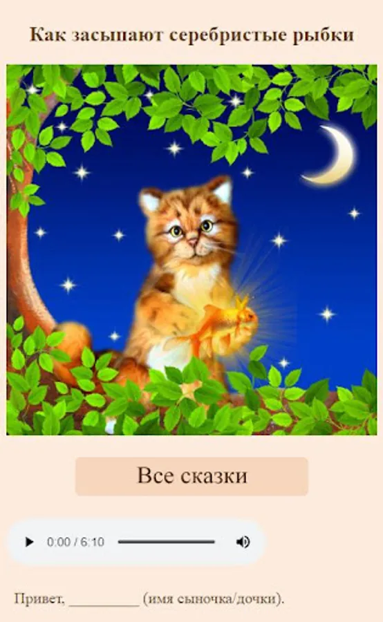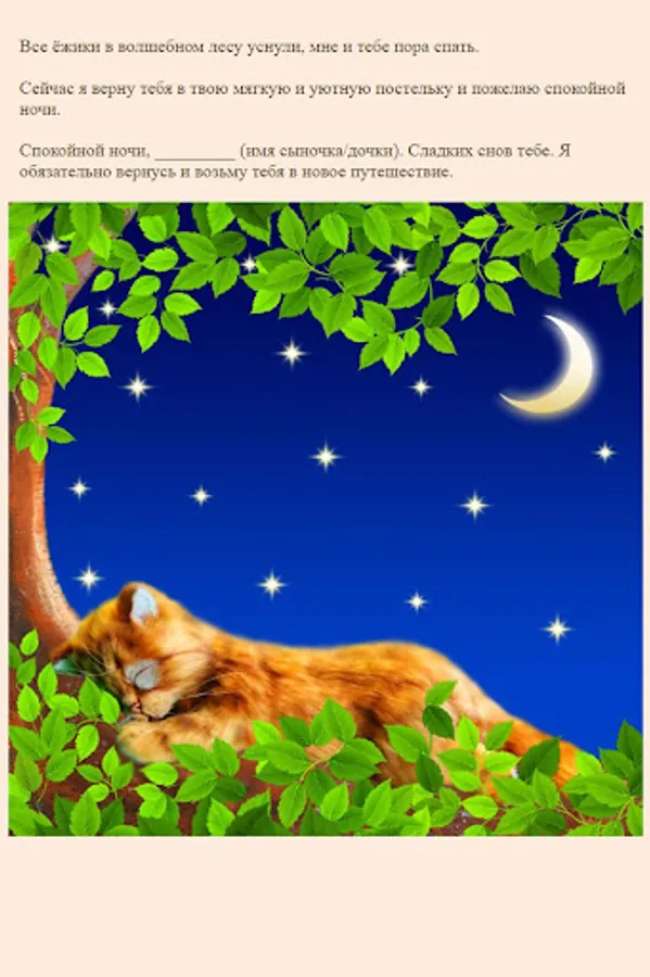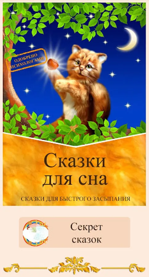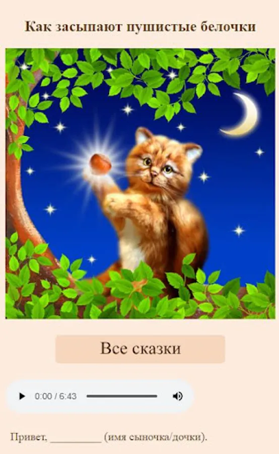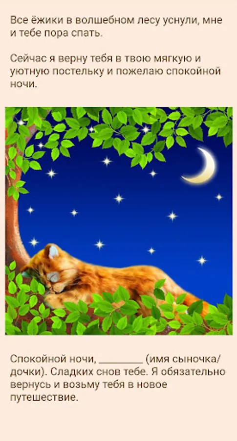 In the application, the magic cat Ogonyok will tell you how to fall asleep: