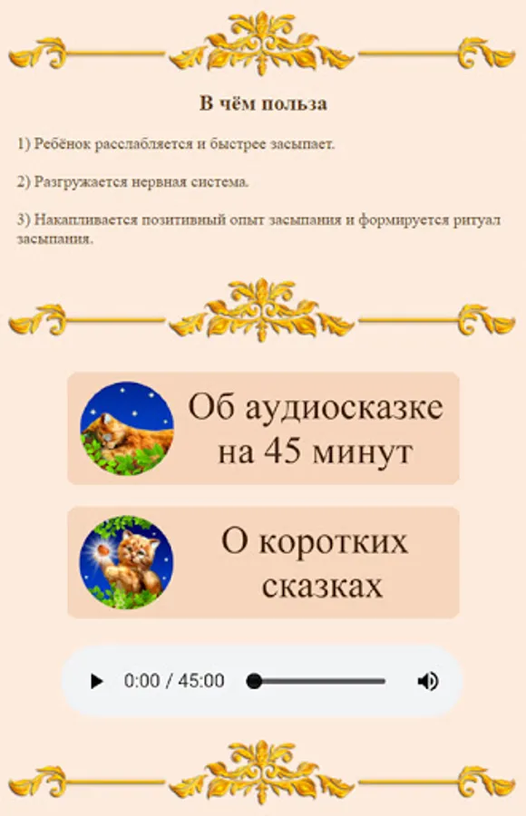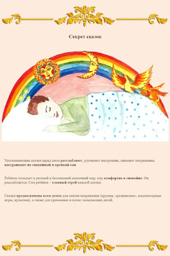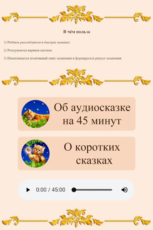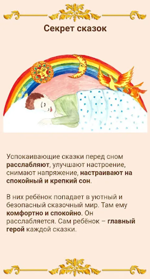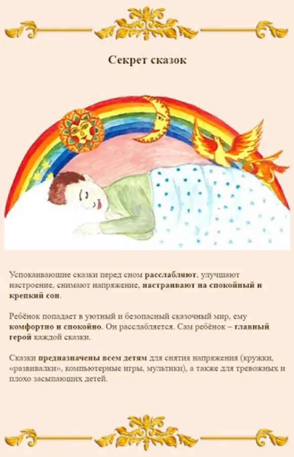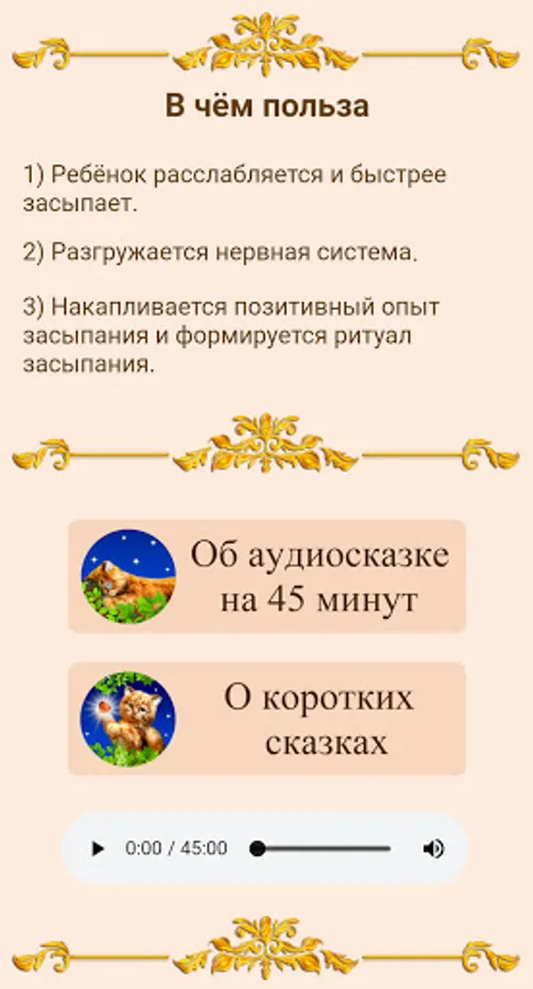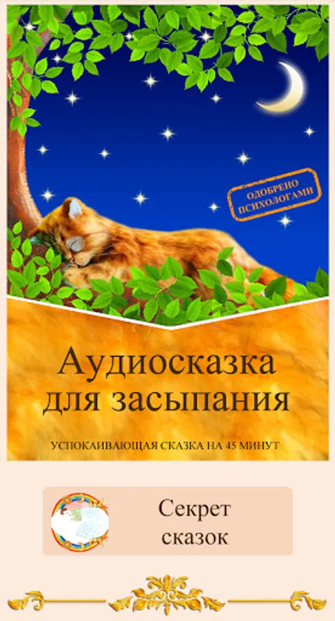 In the application, the magic cat Ogonyok will tell you how to fall asleep: