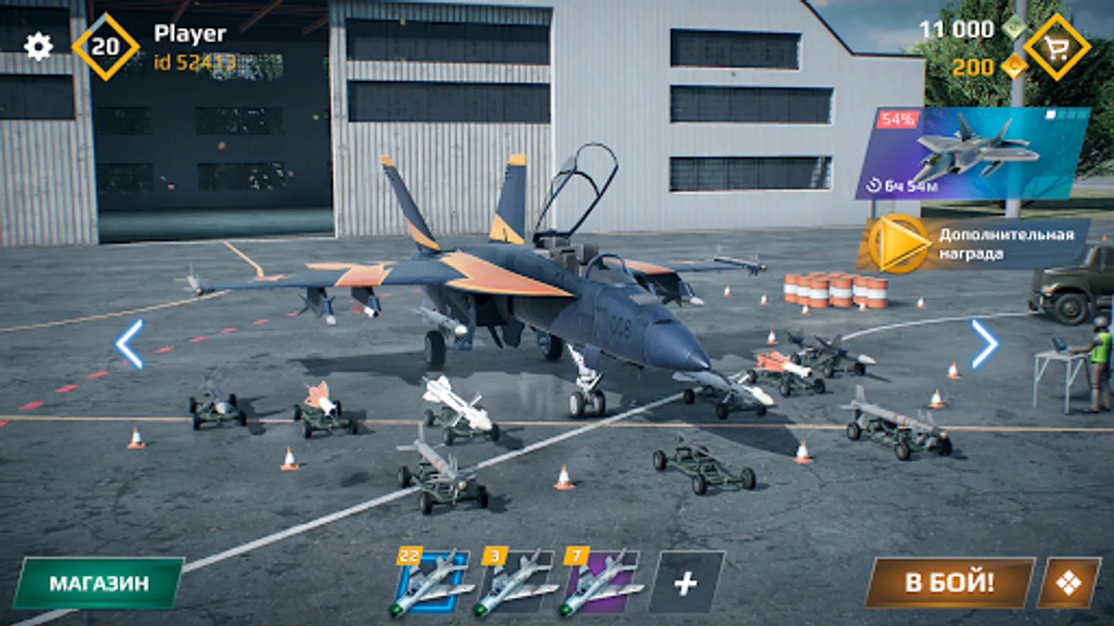 Equip your jet with the latest gear! Choose weapons and equipment to get even stronger! Build your own one-of-a-kind jet!
