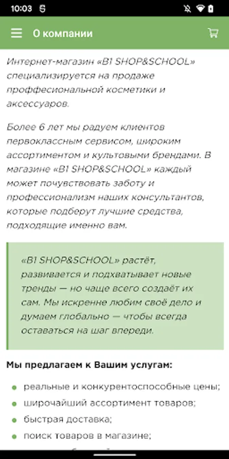 B1 Shop & School is an online shop for cosmetics and perfumes in your smartphone. By installing it, you can buy products from global cosmetic brands in a convenient way. Simple navigation, sorting and search functions allow you to quickly find and buy perfumes and cosmetics that interest you. Connect push notifications to keep up with special offers!