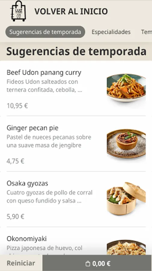 2. Choose your favorite LUZ restaurant and the dishes that appeal to you.
