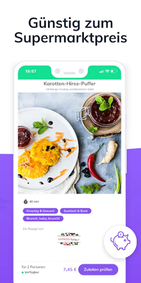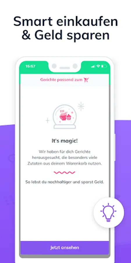 The Foodly app searches for the best offers for you and suggests recipes that complement the ingredients in your shopping cart particularly well. So you get the most out of pack quantities and waste less food. With the Foodly app, you shop more sustainably and protect your wallet.