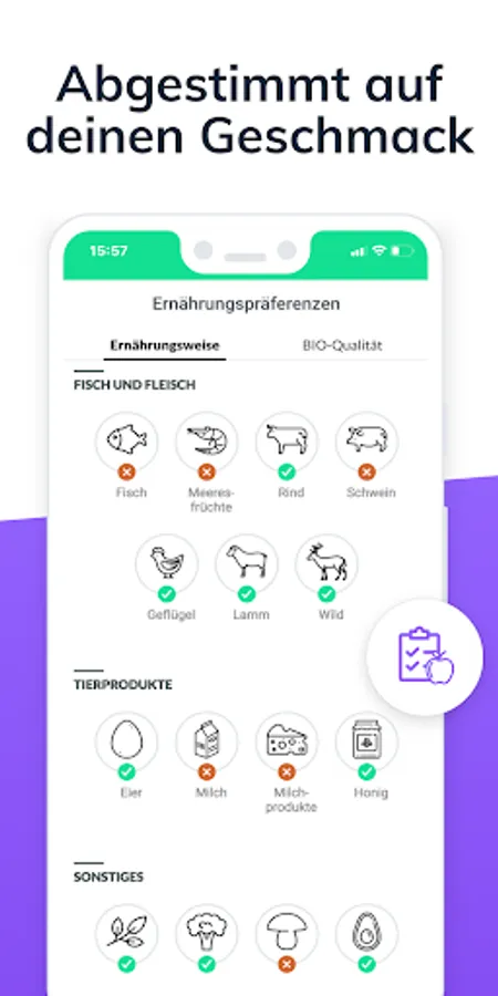 Let yourself be inspired by great food blogger dishes and personal recommendations - always tailored to your taste and your individual diet. 🙌 Whether vegetarian, vegan, without broccoli or organic meat - you determine your preferences yourself and you can change them at any time. 🤓