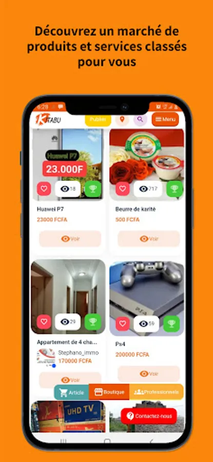 With Kitabu, quickly sell your services, your car, your phone, the tools and clothes you no longer use, video games and consoles, your household appliances, and your household goods and real estate... as an individual or professional (by creating a shop easily and for free). As a Professional or Craftsman Kitabu helps you attract more customers if you create a service profile.