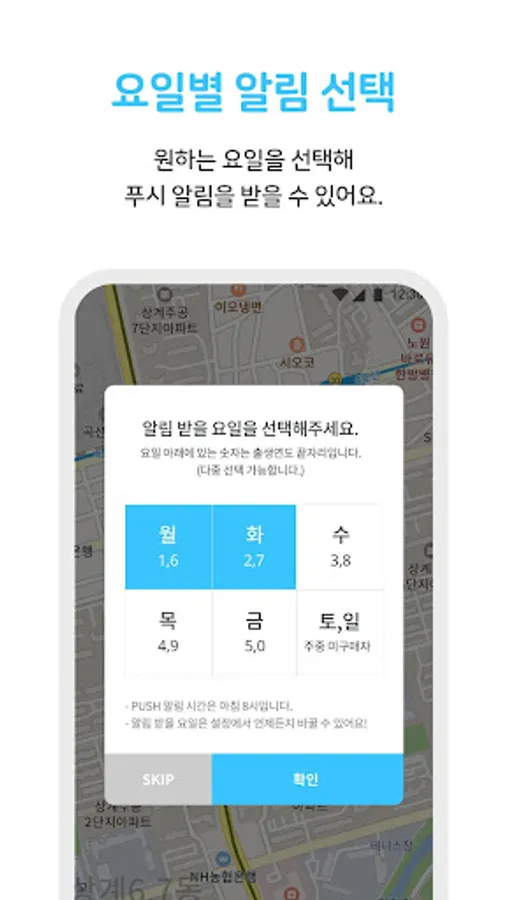 원하는 요일을 선택해 푸시 알림을 받아보세요!