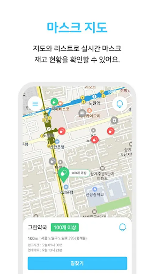 지도와 리스트로 실시간 마스크 재고 현황을 한눈에 확인할 수 있어요!