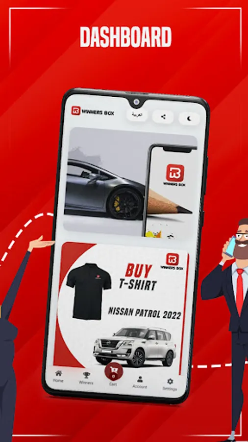 تطبيق "Winners Box " هو التطبيق الجديد الذي يغير الشكل التقليدي لتجربة التسوق عبر الإنترنت. عند شرائك لأي منتج من خلال التطبيق، ستحصل على فرصة الفوز بجوائز فاخرة من خلال خمس فئات ترويجية مختلفة: السيارات، الساعات، النقود النقدية، الإلكترونيات، والمنتجات العصرية.