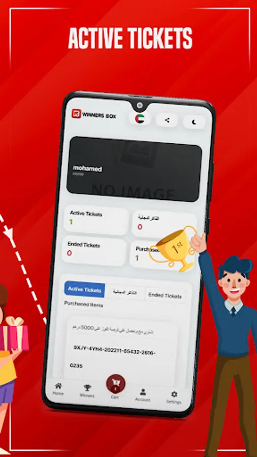 كل منتج تشتريه من خلال التطبيق يأتي مع تذكرة مجانية للدخول في السحب على الجوائز ضمن الفئة التي اخترتها. ولكن، تذكر أن كل فئة تحتوي على عدد محدود من المنتجات، وبالتالي، فإن عدد تذاكر السحب المجانية محدود أيضًا.