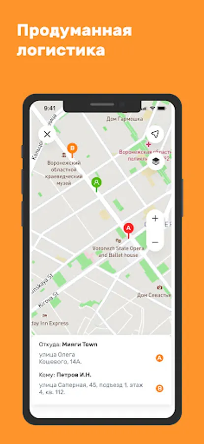 The application is a logistics module created for the comfortable work of couriers, managers, logisticians and managers in working with orders.