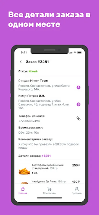 Couriers get the opportunity to see the full information on the order, the manager can track the status of delivery of orders, and the manager will receive a comprehensive report on all cash receipts to the main database.