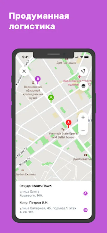 The application is a logistics module created for the comfortable work of couriers, managers, logisticians and managers in working with orders.