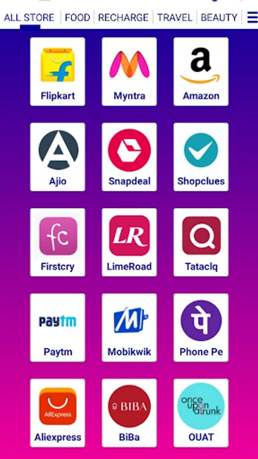 Flipkart, Amazon, Shopclues, Snapdeal, Paytm Mall, Myntra, TataCliq, Banggood, Limeroad and more online shopping apps.