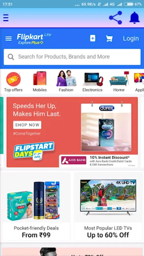 Find the latest offers in our online shopping app. This is India’s one of the largest online marketplace, giving you access to not just what you need, but to all that you desire.