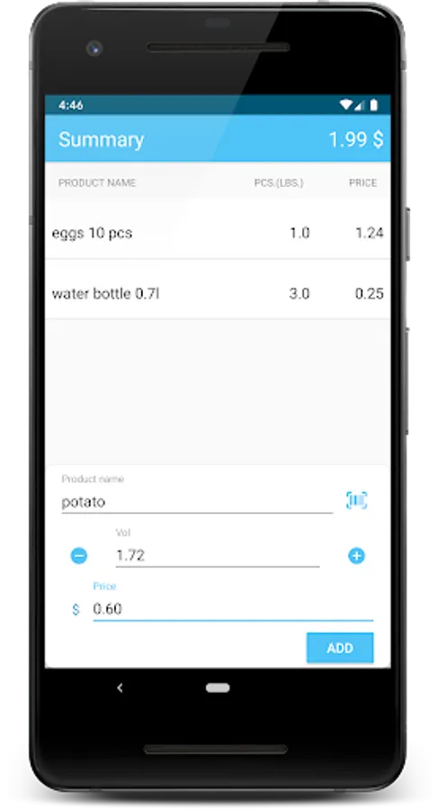 Our application is suitable for all those who wish to save money when shopping in stores and supermarkets. It allows you to add a product to the cart and manually enter its value. The functionality of the application also includes a barcode scanner that automatically determines the name of the product, you just have to specify its value.