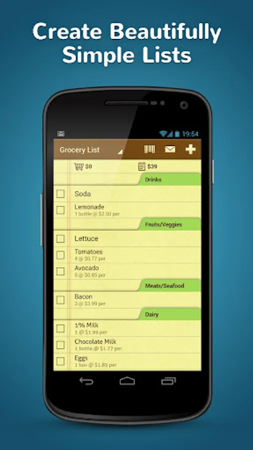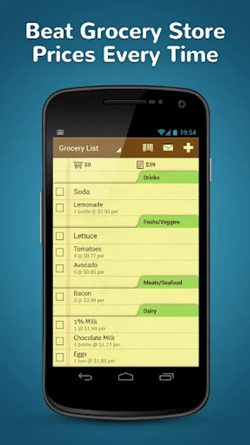 - Add groceries to your grocery list easily and instantly using the barcode scanner