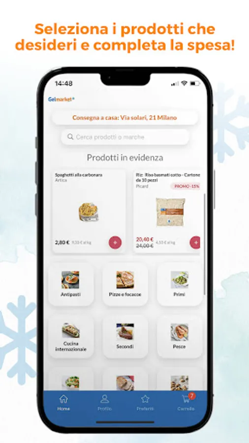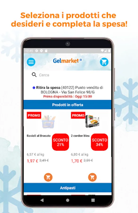 With the Gelmarket app you can select the products from the wide range offered and discover our promotions. You just need a click to have our specialties directly at your home or to pick them up in the store. Check the coverage areas of the service and start shopping on Gelmarket!