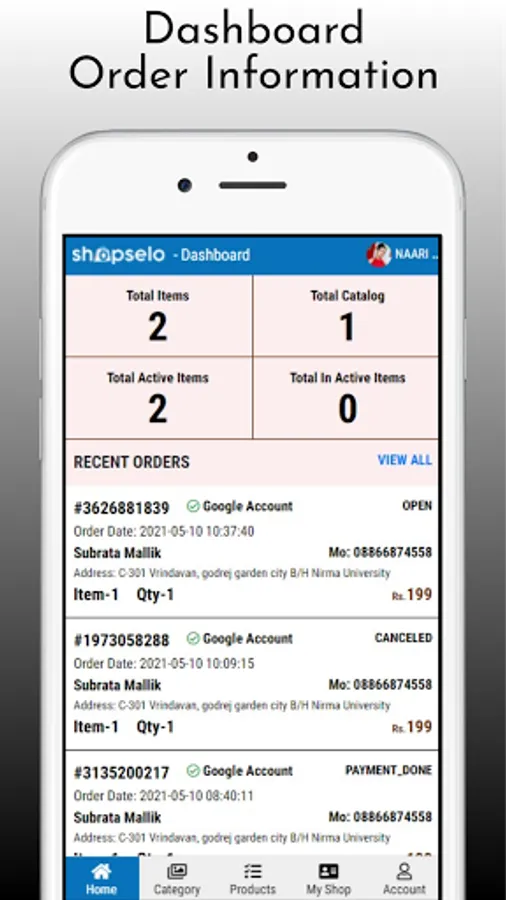 3. you will get new order along with the customer's name, address and verified mob number.