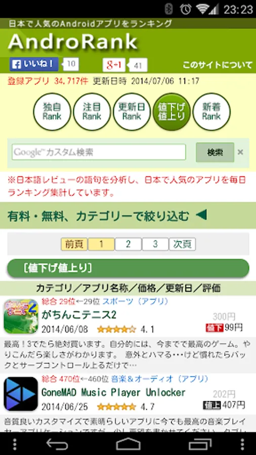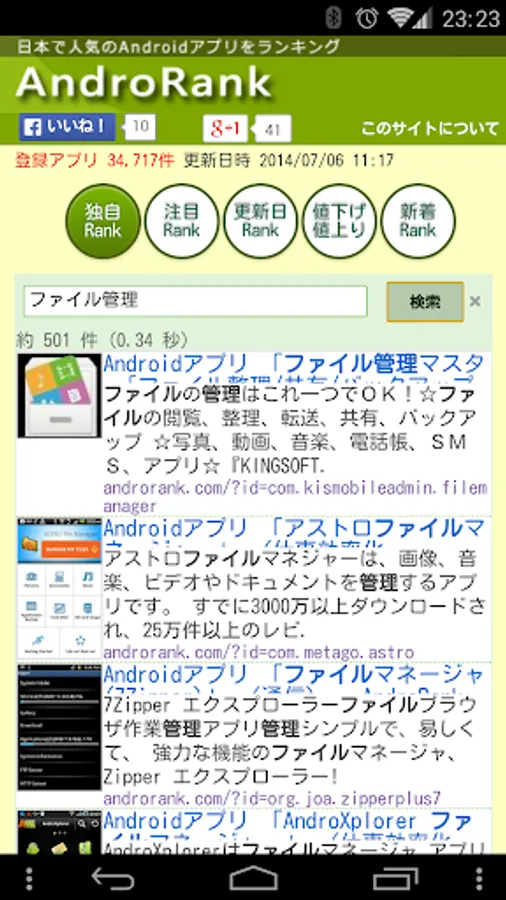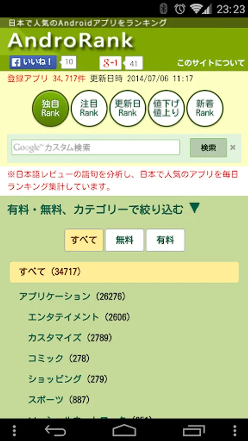 AndroRank (Andro rank) analyzes the Japanese review of Google Play, aggregates daily app that Japanese prefer, is a Web site that has posted in the ranking format.