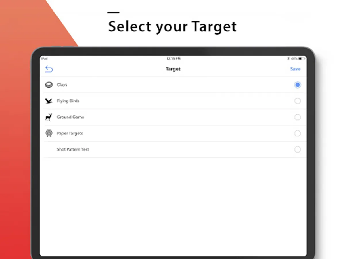 6. Select your target type (Clays, Flying Birds, Ground Game, etc)
