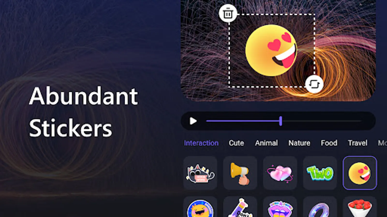 -240+ static and dynamic stickers and emojis of animals, festivals, charaters and other occasions are within your reach.