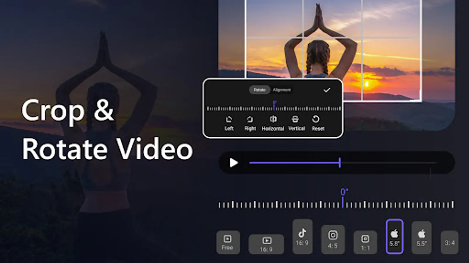 -Crop, rotate and flip your video with rich aspect ratios for different platforms.