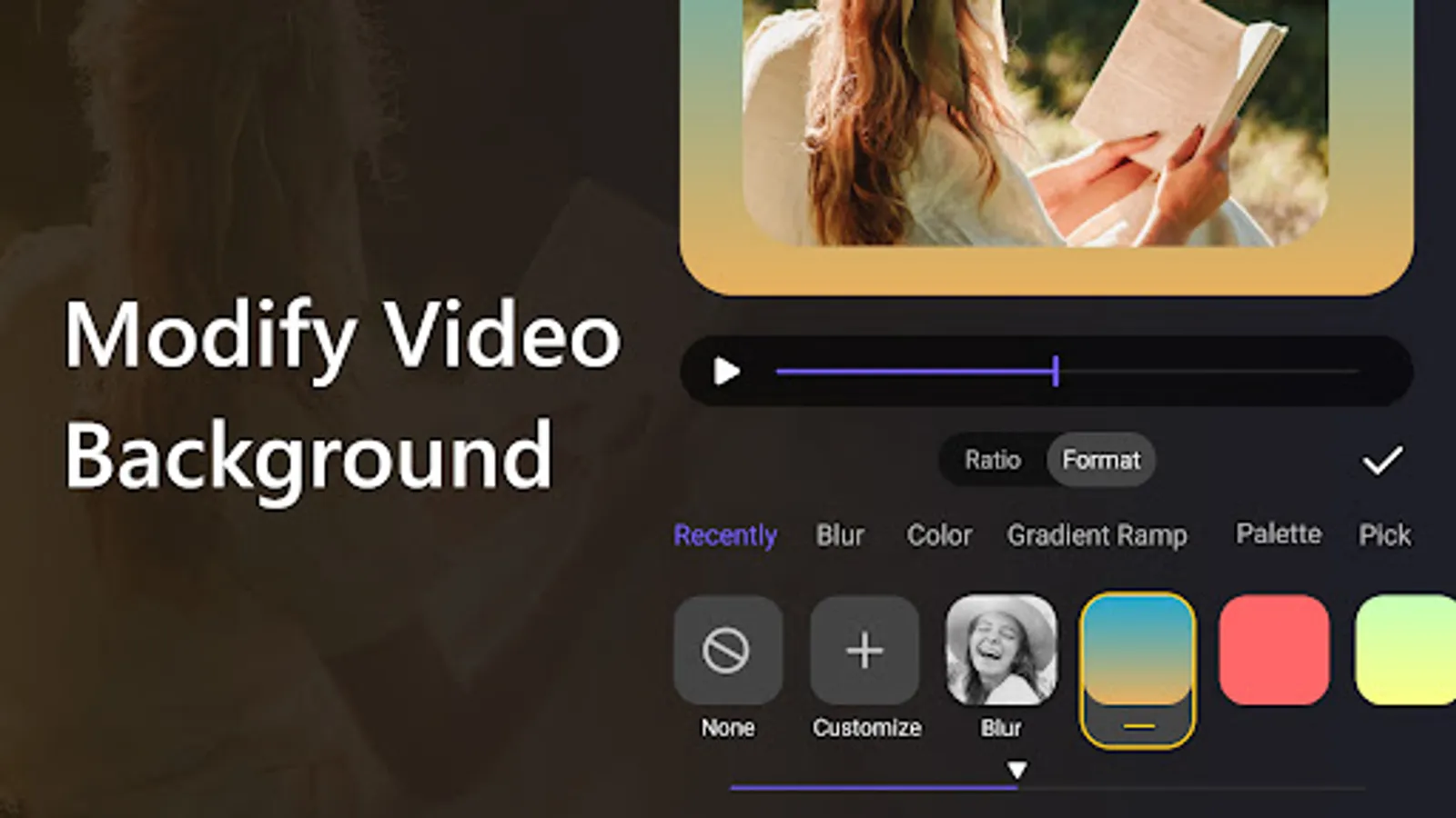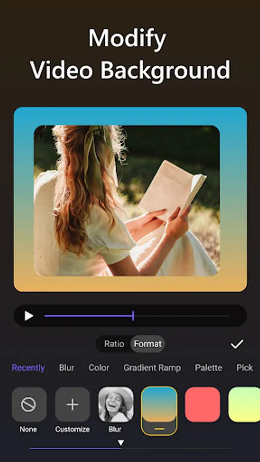 -Change the video background with multiple forms and common ratios.