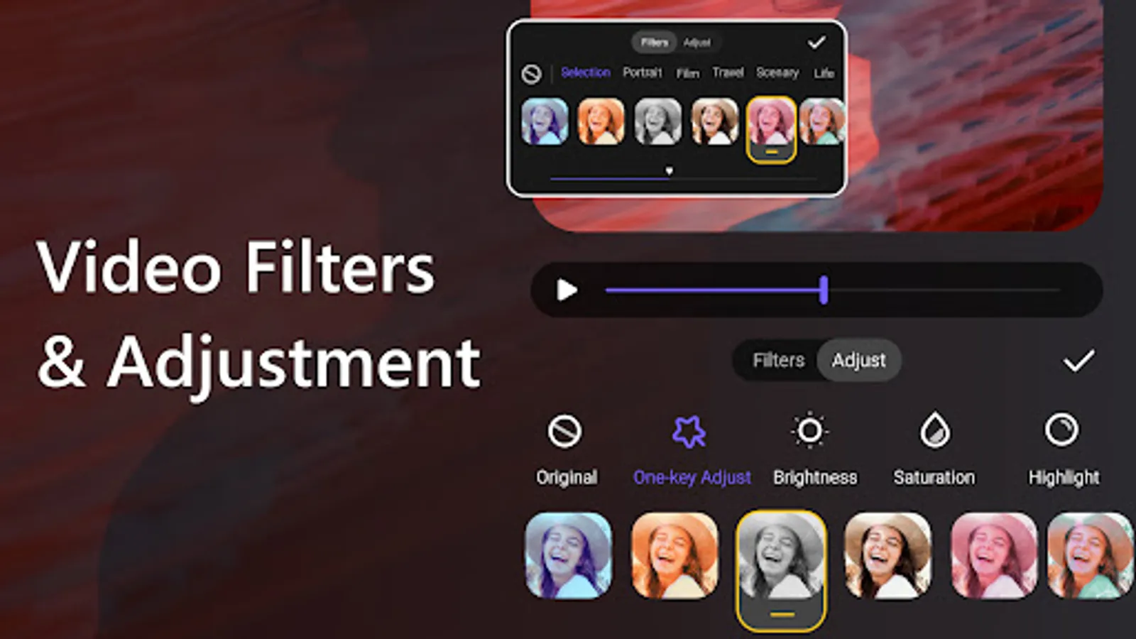 -Adjust the brightness, saturation, highlight, contrast and more.