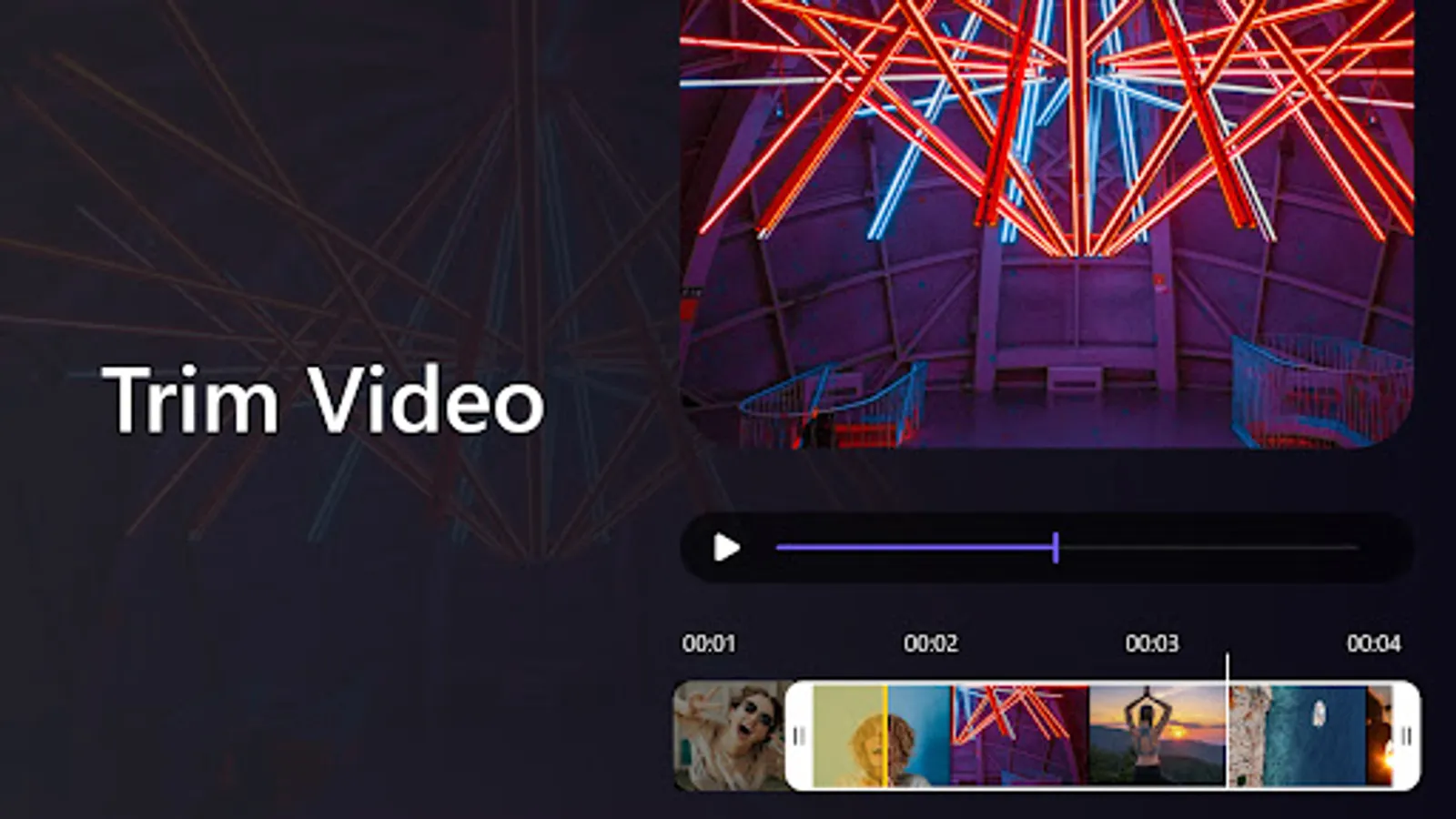 -Simply trim, split and merge videos to get exactly what you want.