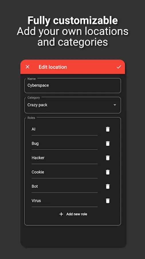All locations and roles can be customized and organized into categories!