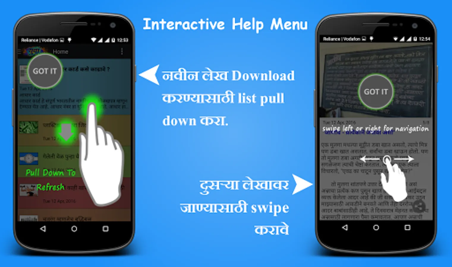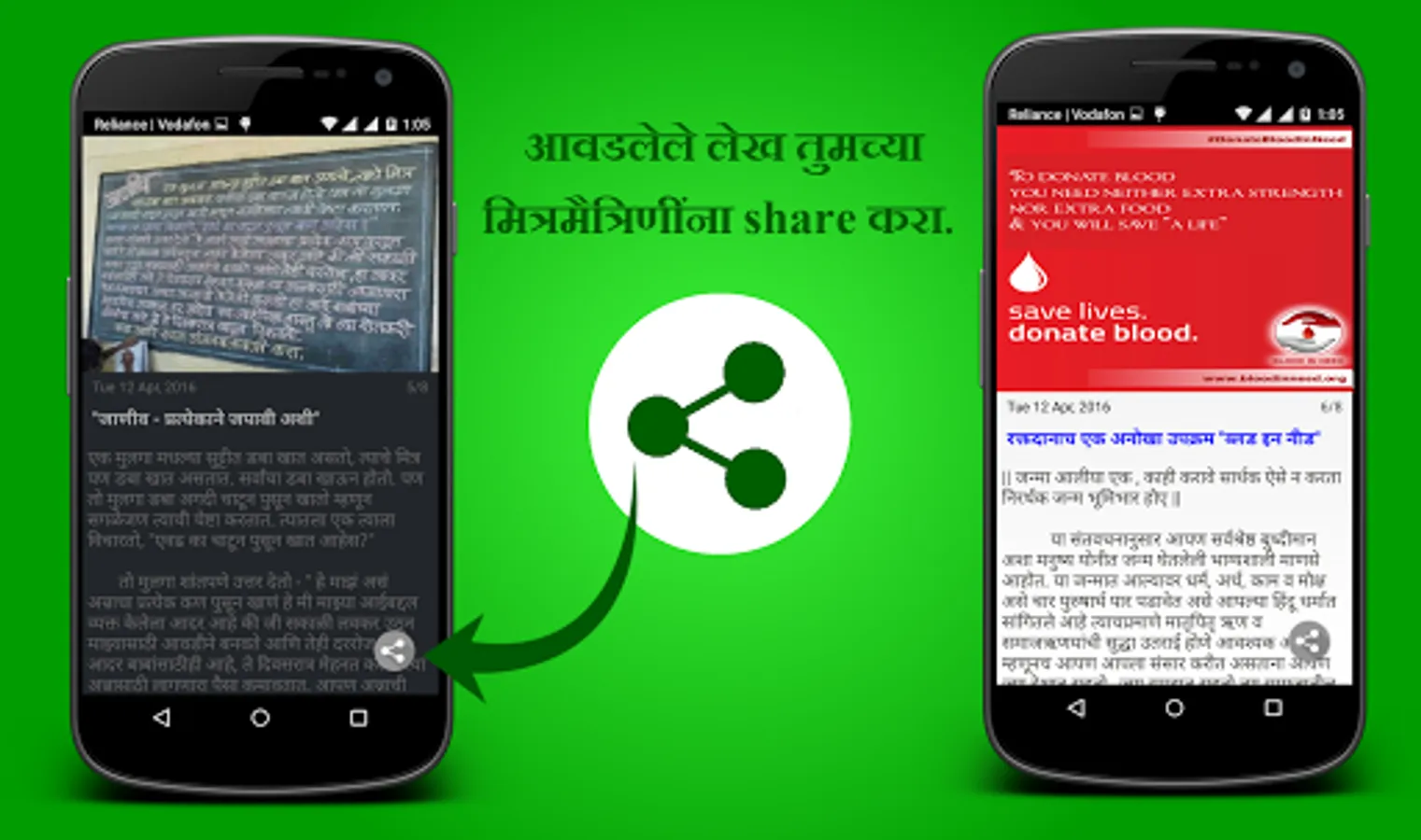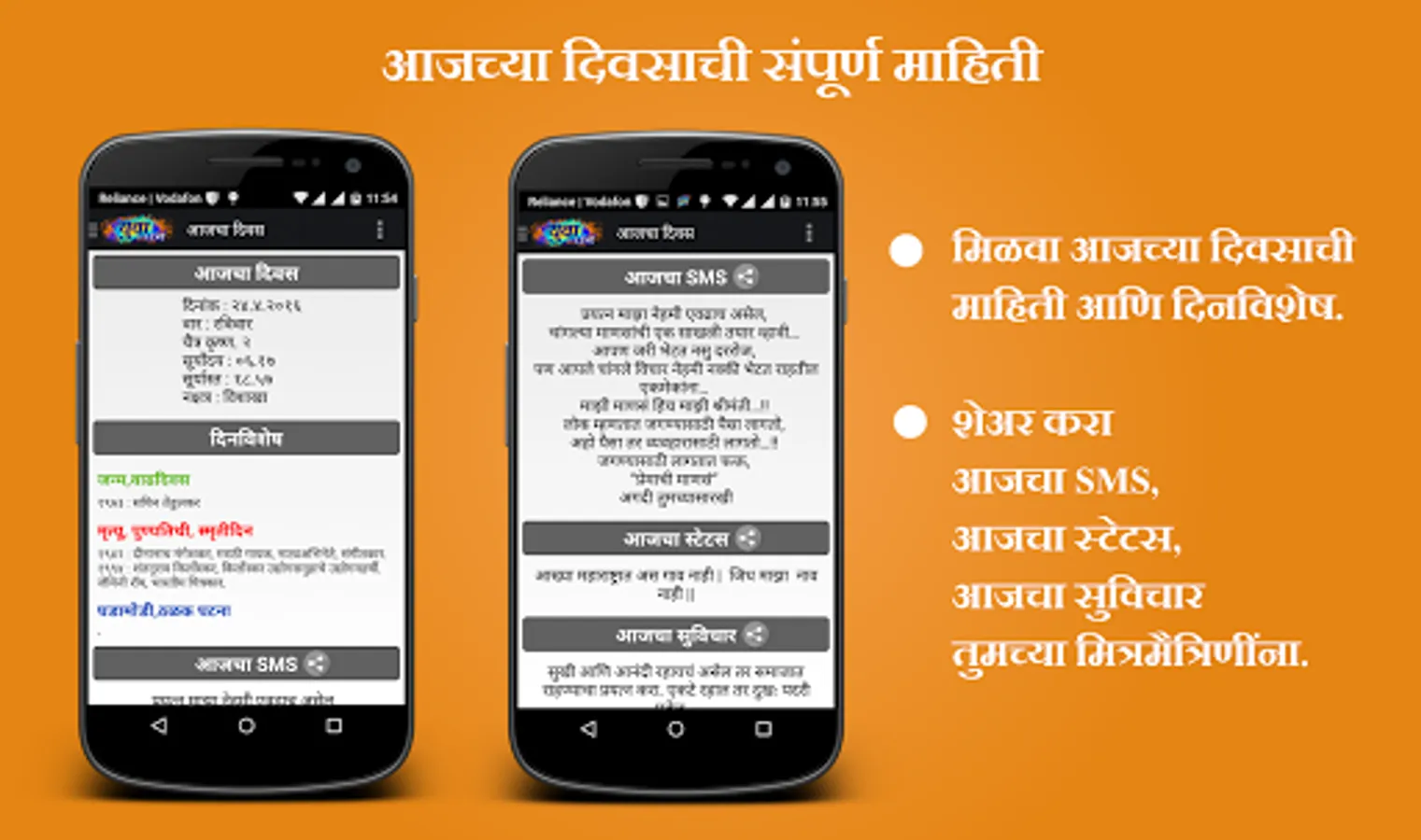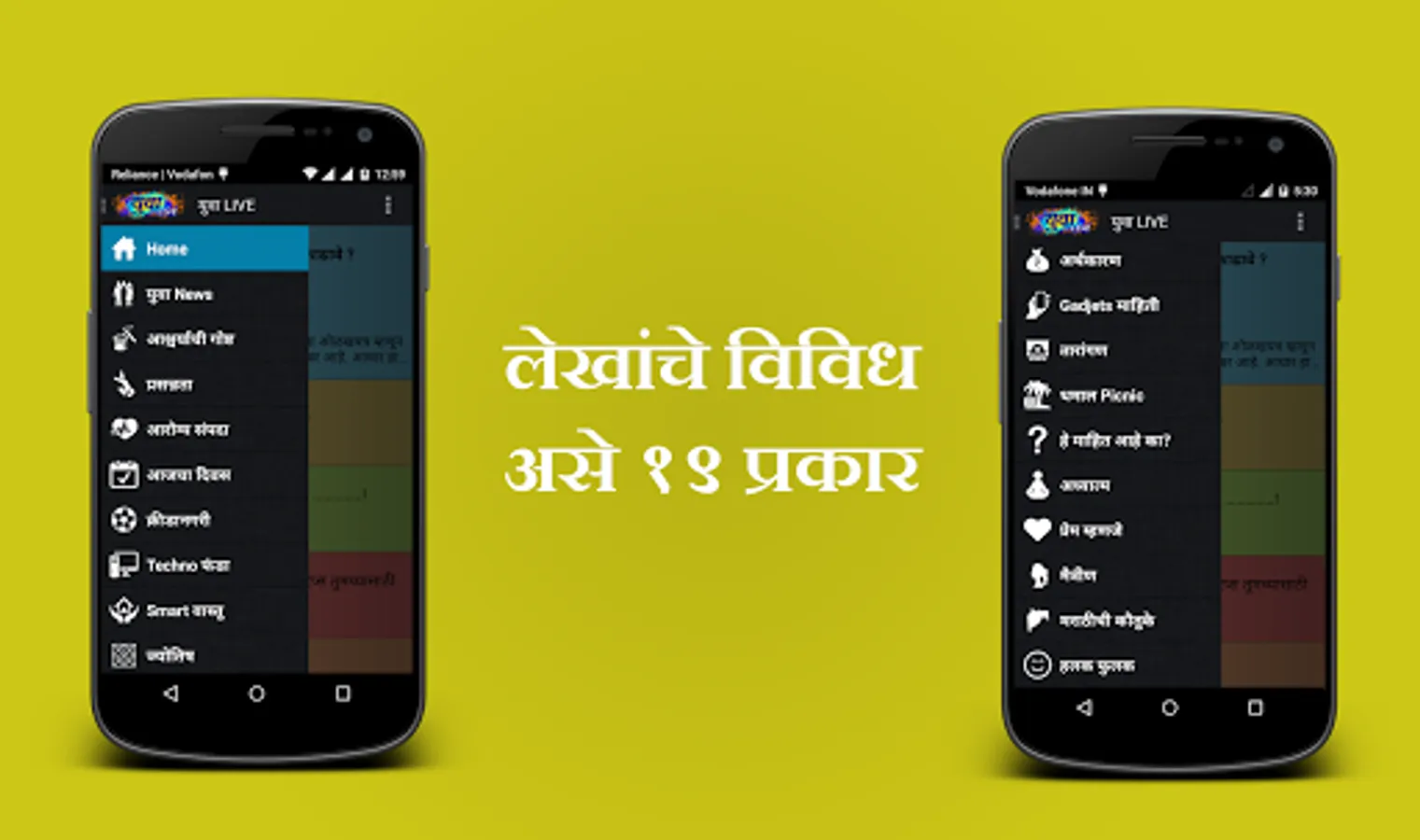 True to our mission this app contains articles from various sources including social media. You can find articles related to youth, films, technology, gadgets, astrology, female, health, sports, smart home, travel, love, spirituality, jokes, economics, happiness etc. It also shows daily Marathi Panchang.
