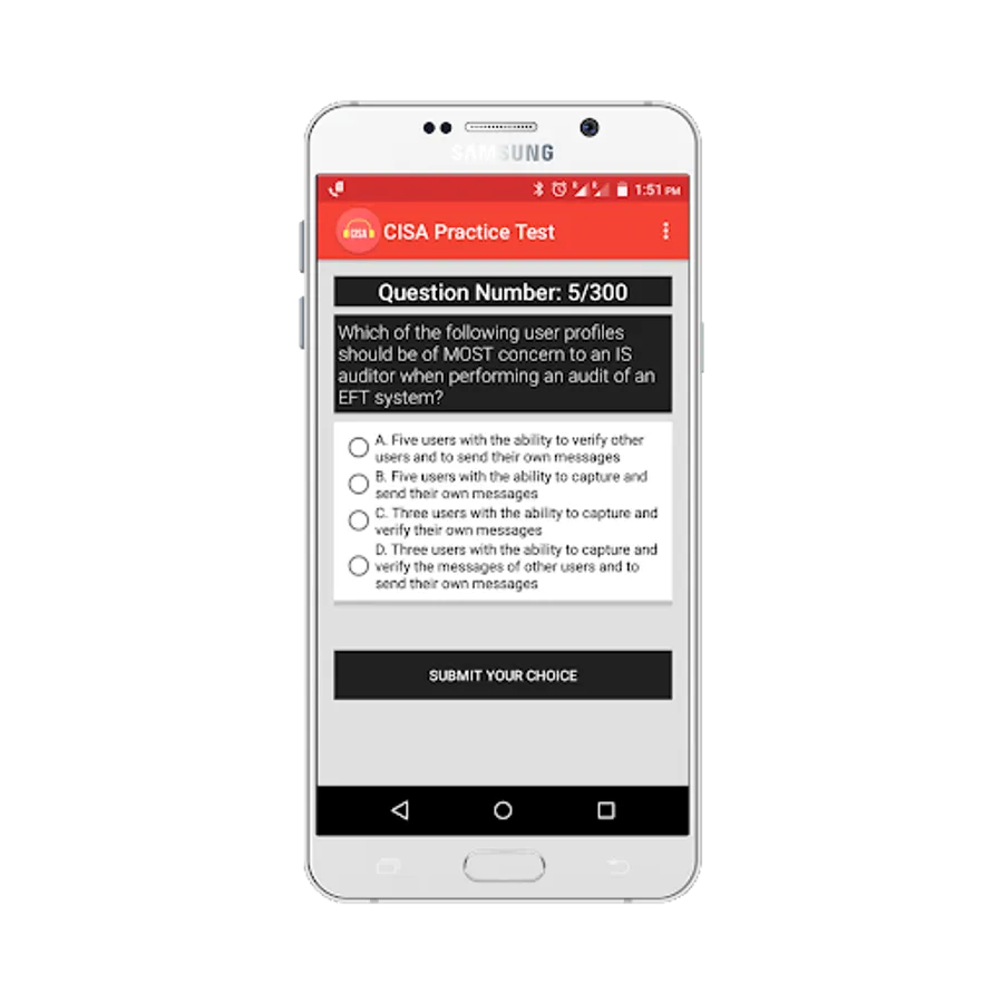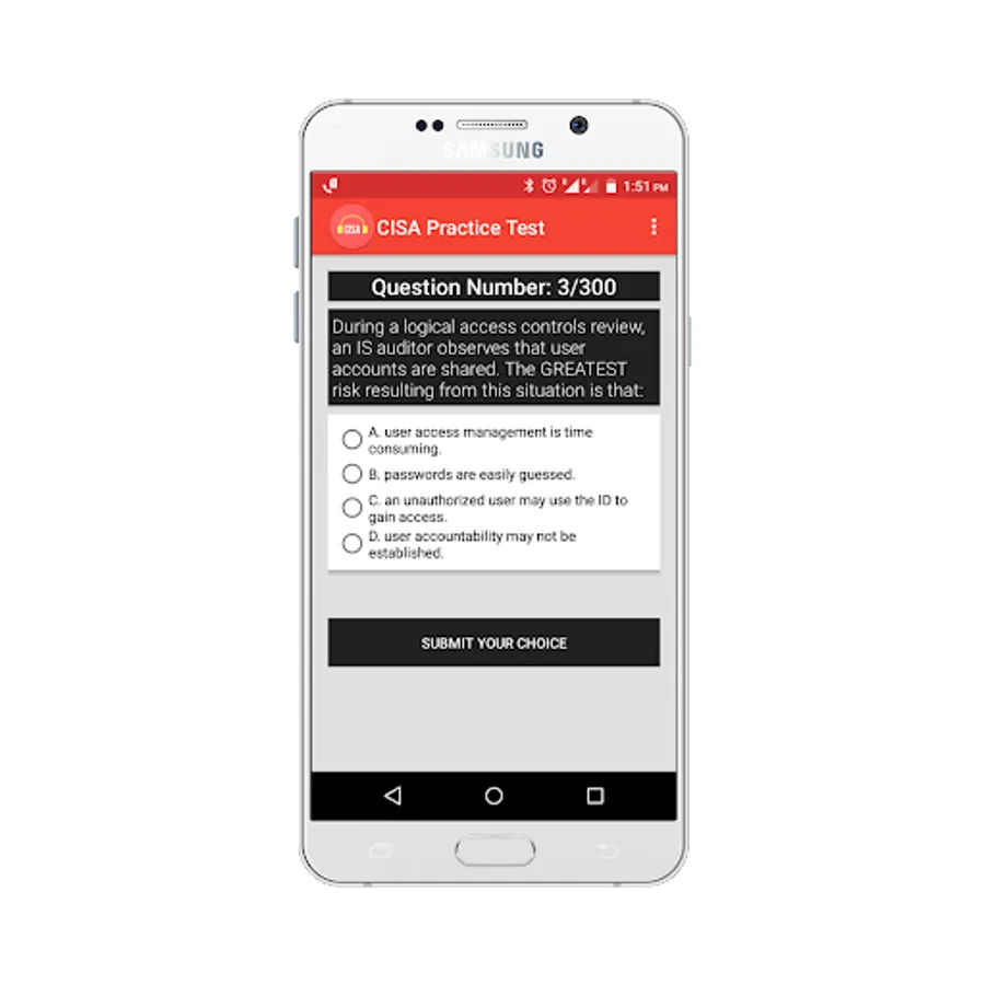 Practice for CISA: Certified Information Systems Auditor Practice Test App, and perform a simulation test to get prepared for your exam, and more than 300 questions with answers.