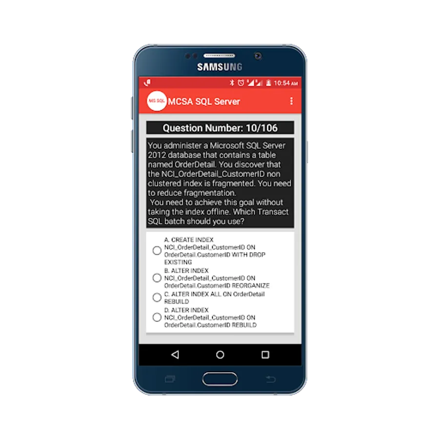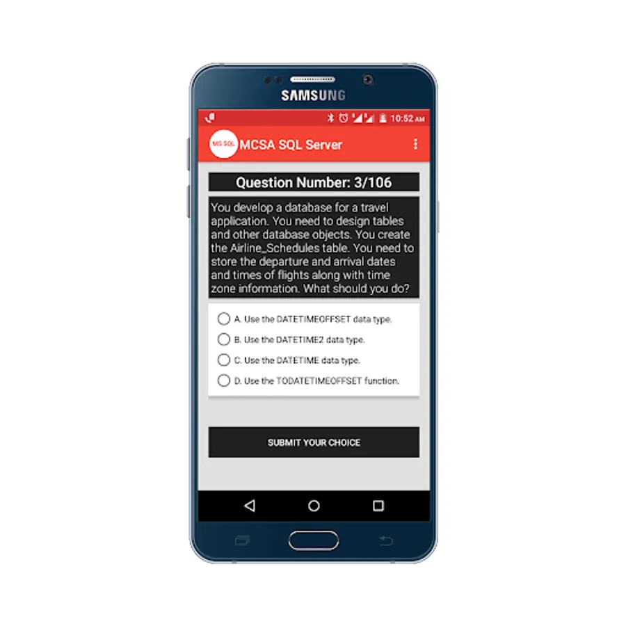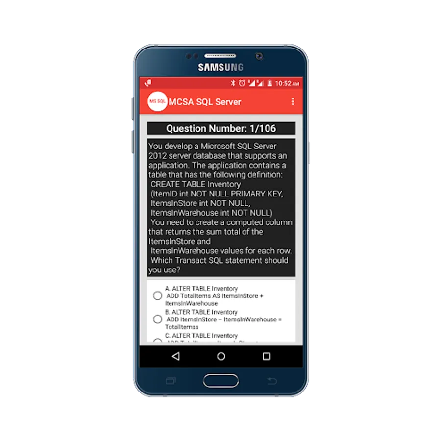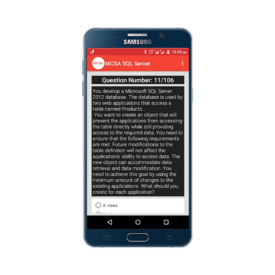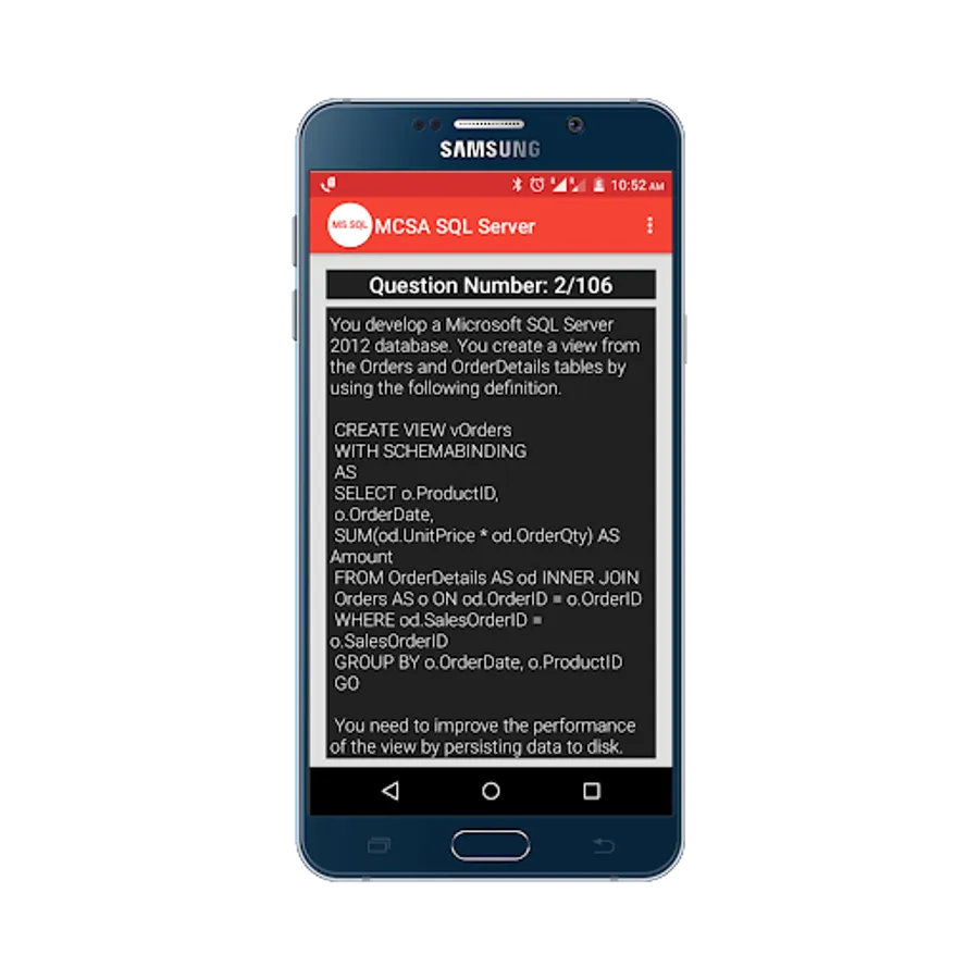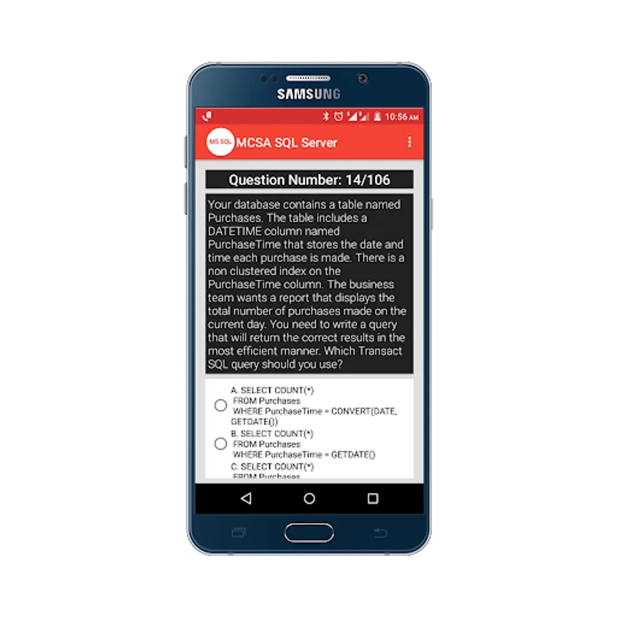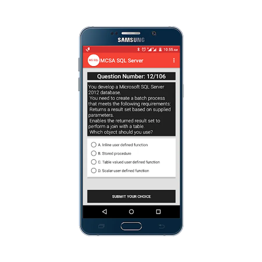 Practice for Microsoft Certified Solutions Associate(MCSA) SQL Server 2012/2014 Practice Tests App, and perform a simulation test to get prepared for your exam, and more than 100+ questions with answers.