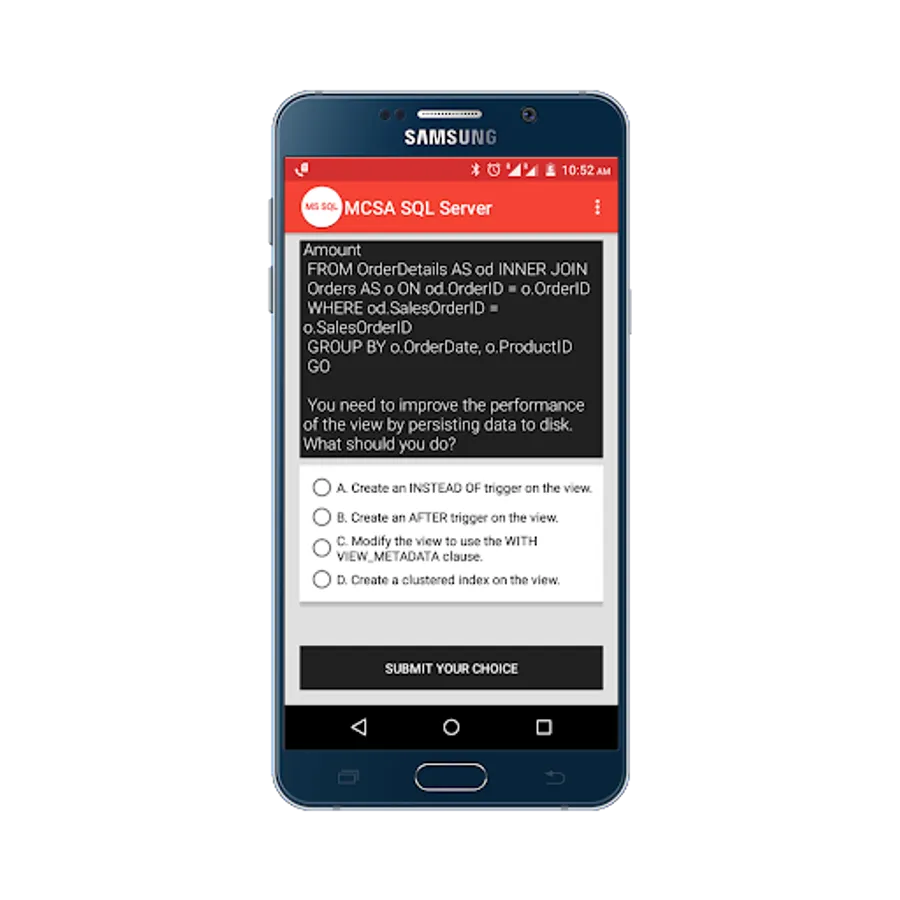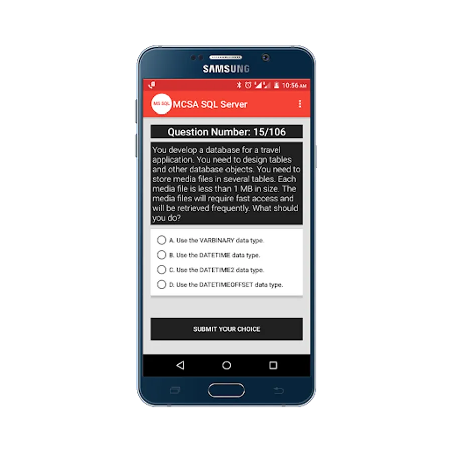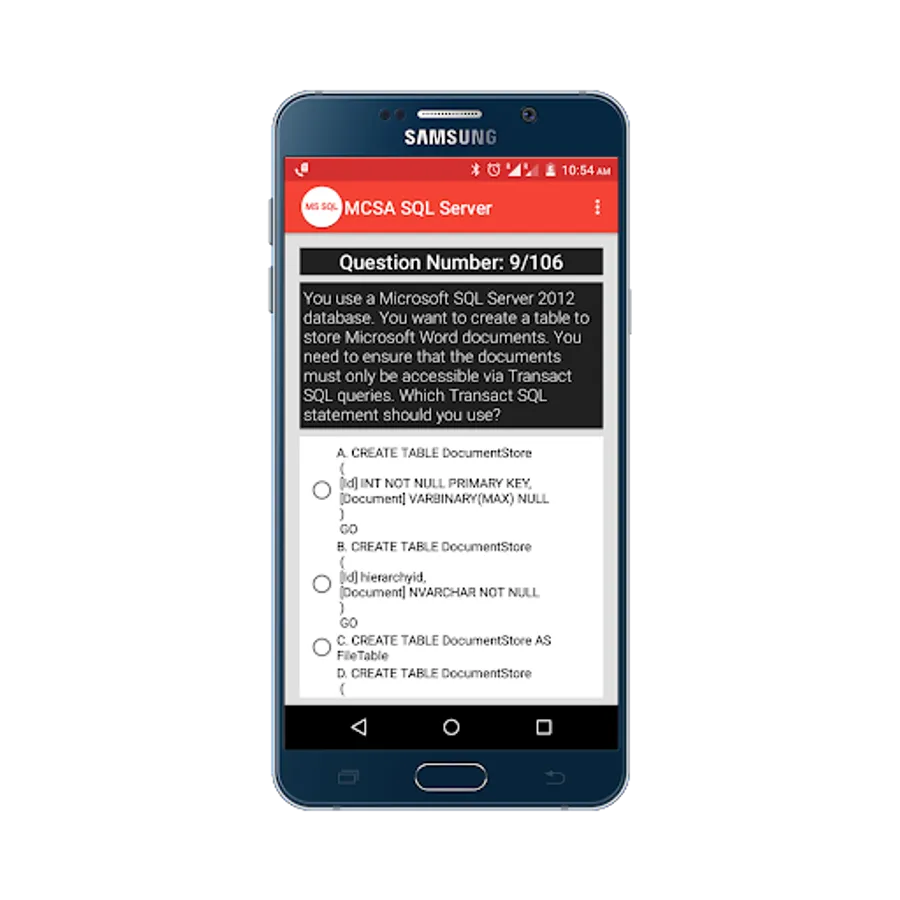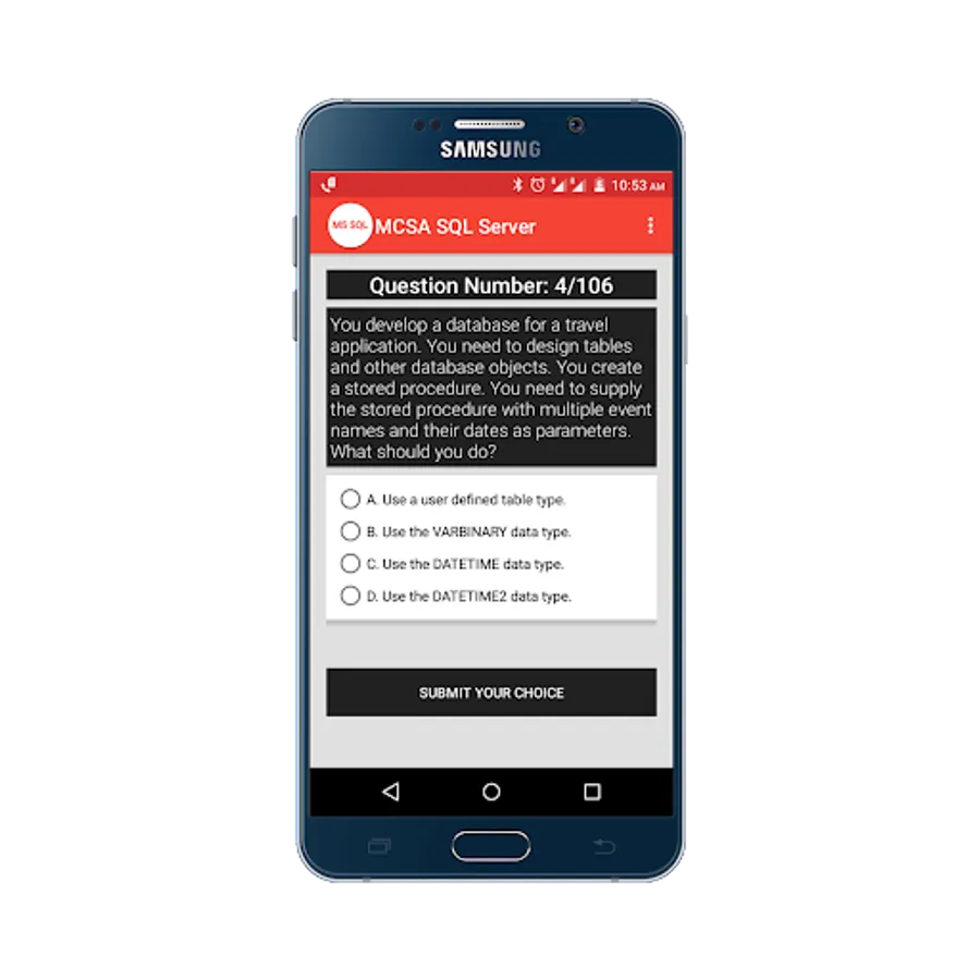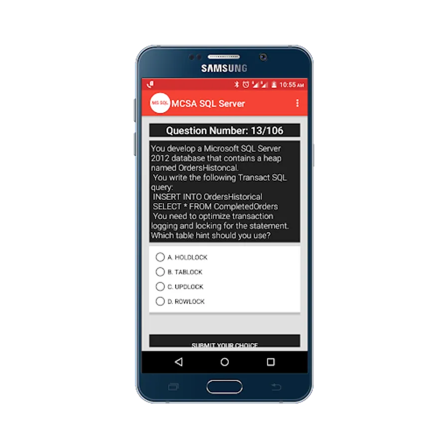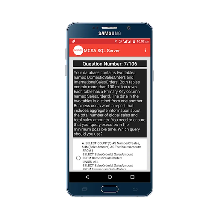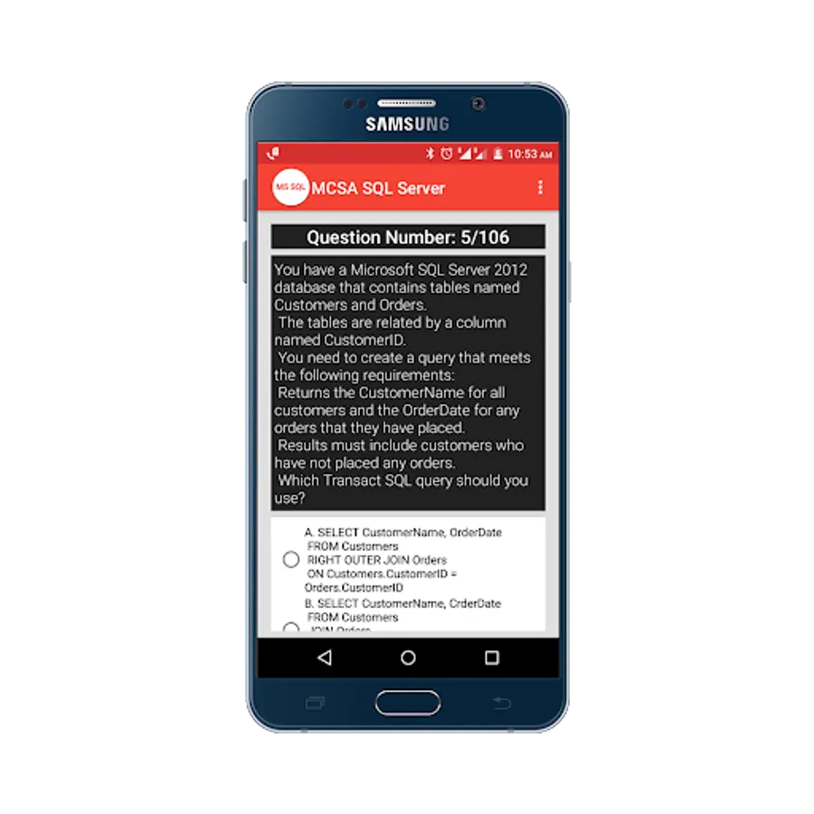 Practice for Microsoft Certified Solutions Associate(MCSA) SQL Server 2012/2014 Practice Tests App, and perform a simulation test to get prepared for your exam, and more than 100+ questions with answers.