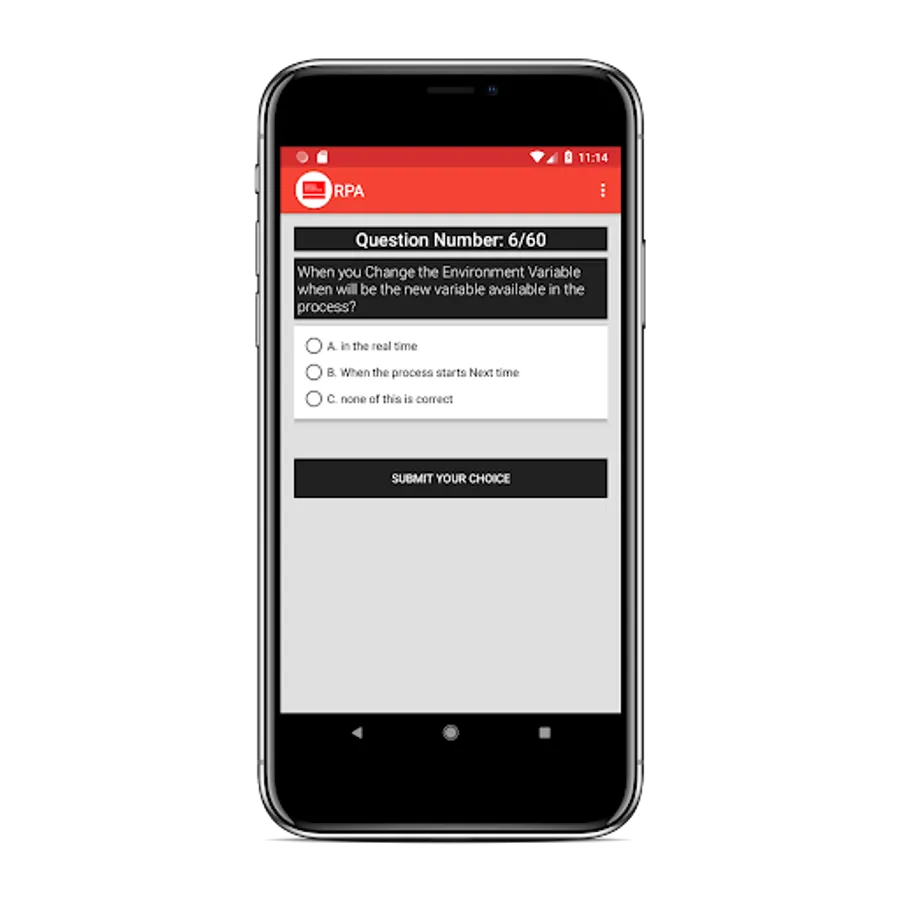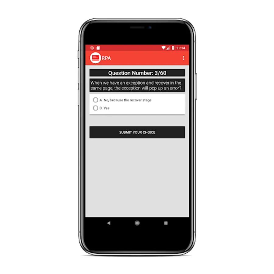 Practice for Robotic Process Automation Test App, and perform a simulation test to get prepared for your exam, and more than 50+ questions with answers.