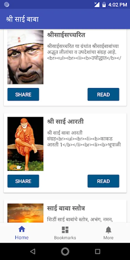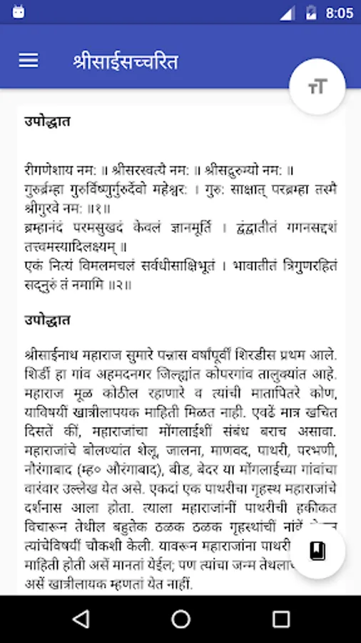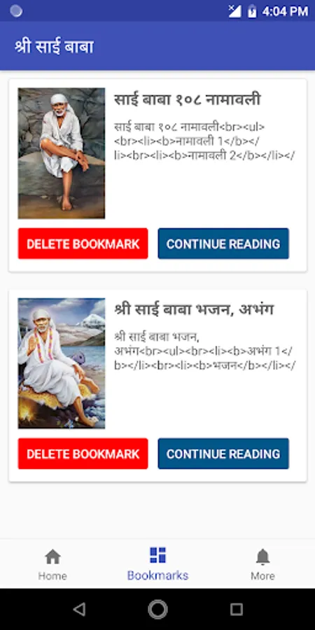 We are pleased to present all-in-one app of Shirdi Sai Baba including Satcharitra, aarti, stotra, bhajan, abhang, 108 namavali, 11 vachan, etc. in Marathi.