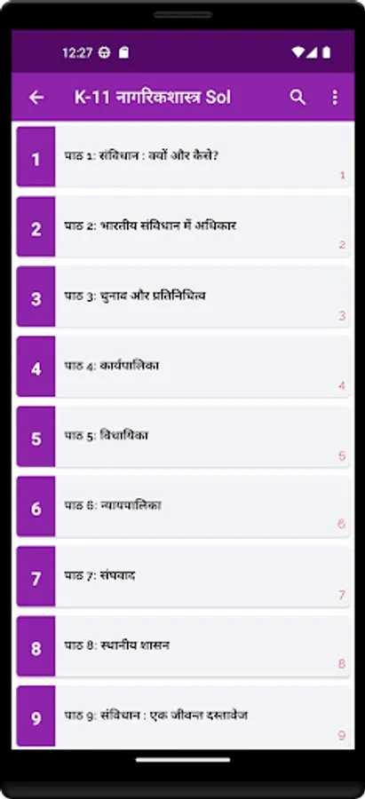 11th class Civics solution in Hindi app Included : (content)
