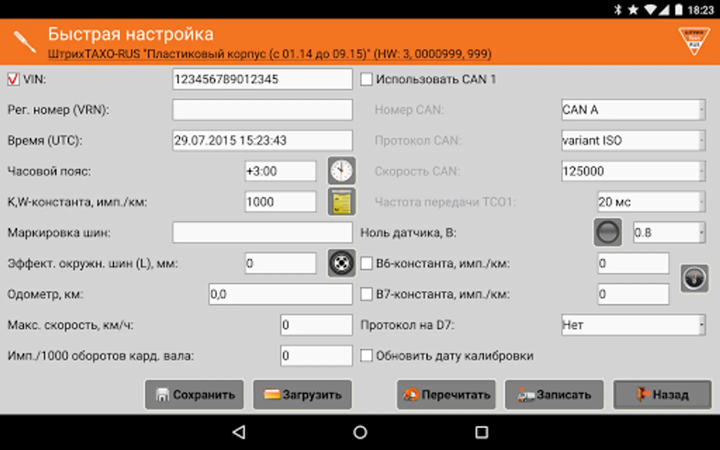 The SHTRIKH-M: TachoMaster v 3.3 program allows you to calibrate the SHTRIH-Tacho RUS tachographs via a Bluetooth channel.