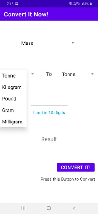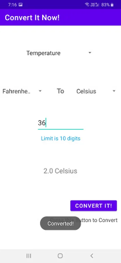 Convert It Now! is a simple, smart and elegant tool with categories of units that are used for Educational Purpose.