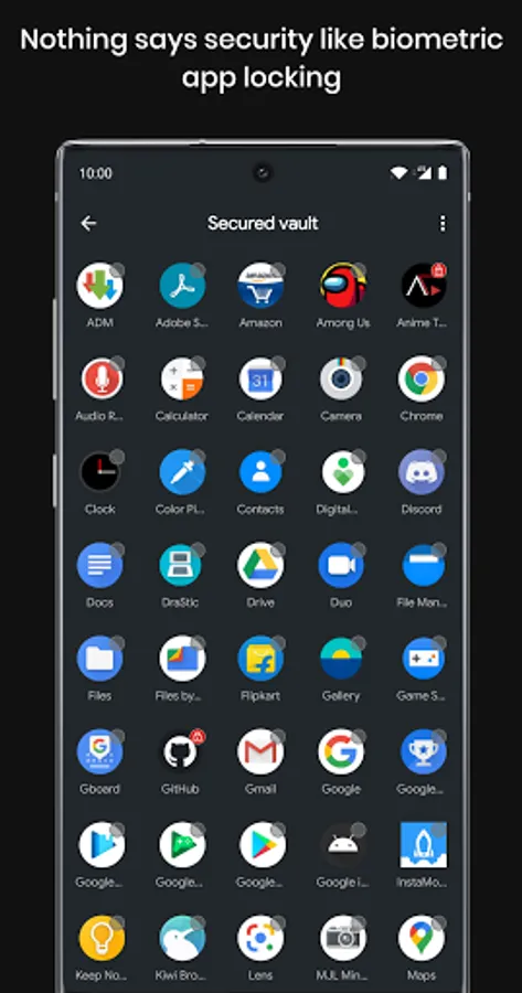 Still want more? Secured Vault allows you to lock sensitive apps with your on-device biometrics. (Hardware compatibility varies between devices)
