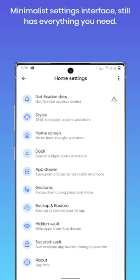 Change everything from fonts, icon shapes and sizes, app launch animations, custom grids, swipe gestures and more.