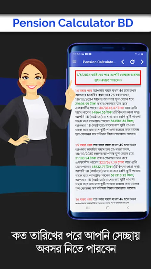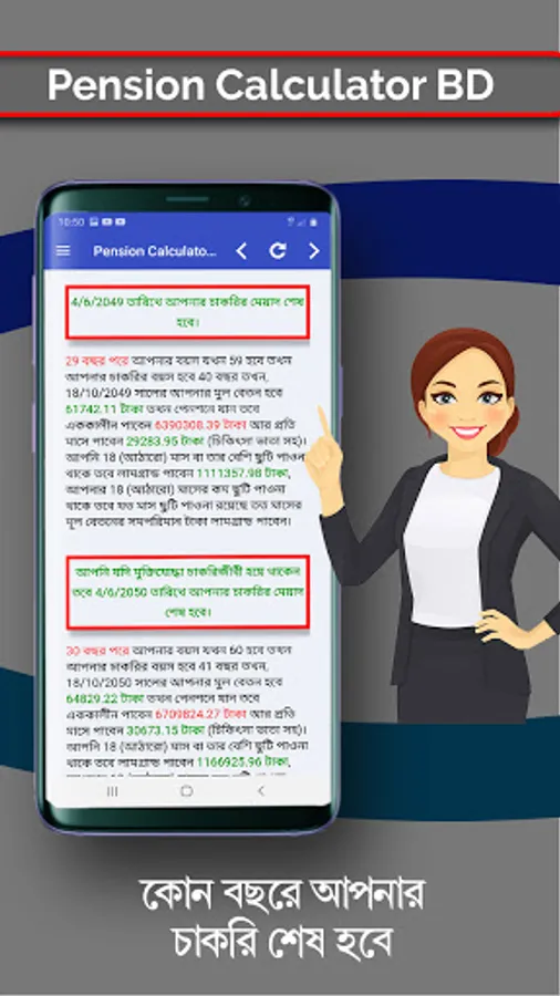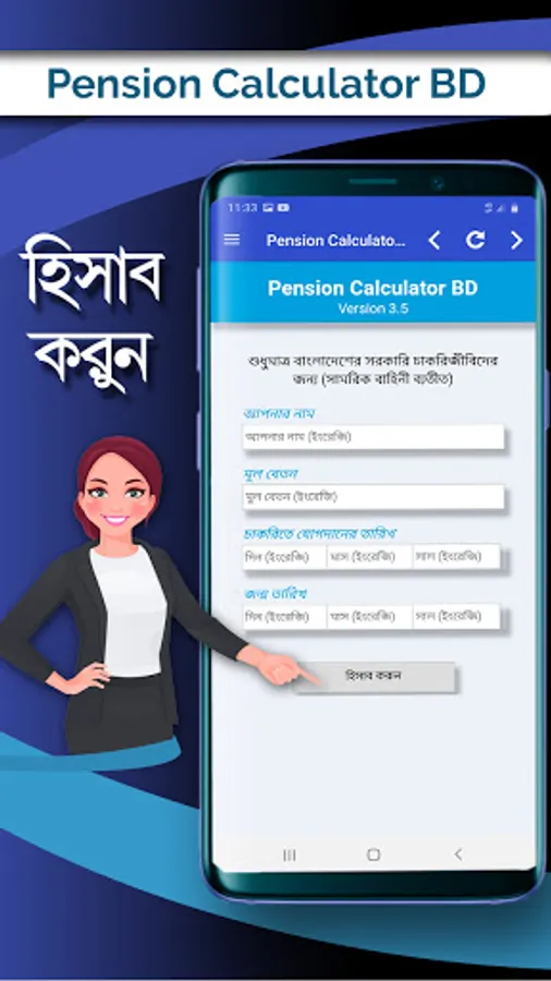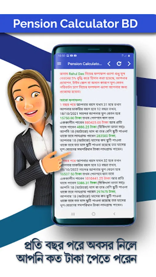 Pension Calculator BD displays results by calculating with the information entered by the user, Pension Calculator BD has nothing to do with the official accounting branch.