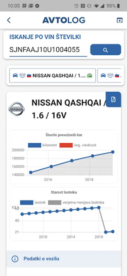 A collection of information on used vehicles in one place ensures transparency, awareness and greater safety of used vehicles. All possible vehicle history is available to make a purchase without a doubt or to facilitate the sale of a vehicle by simply entering the vehicle identification number (VIN). A transparent display with the help of visualization reveals the condition of the Slovenian vehicle fleet to less professionally skilled users.
