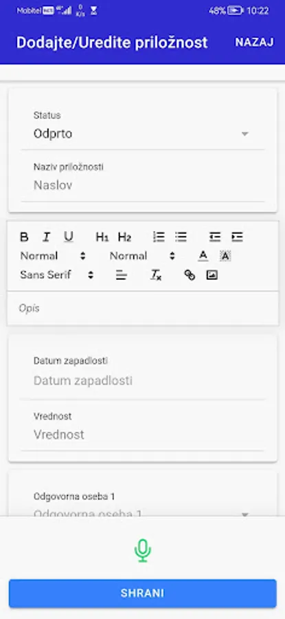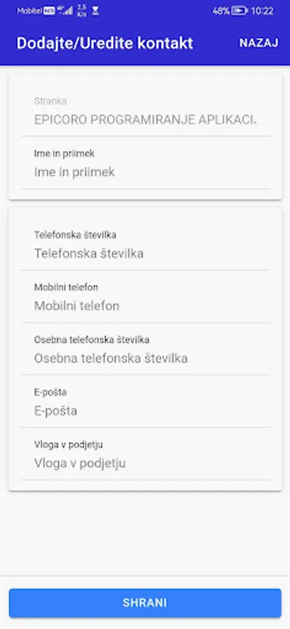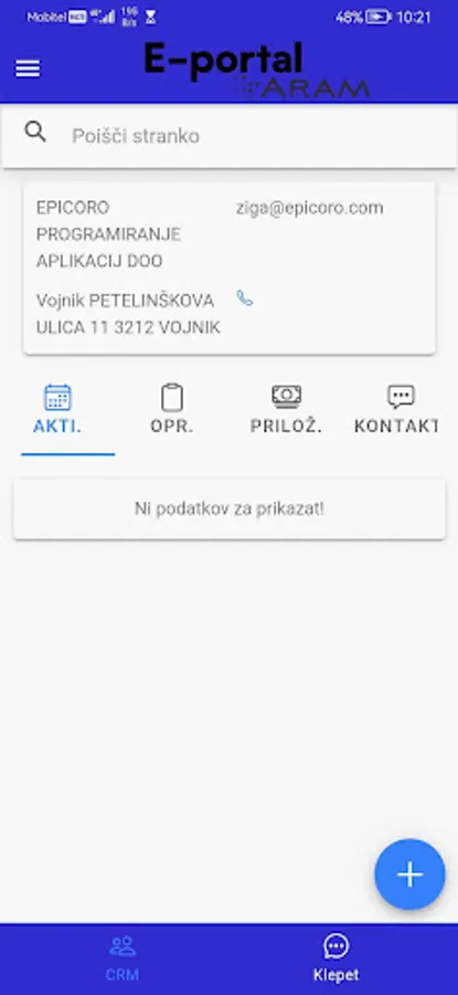 Mobilna apliakcija je namenjenea zapsolenim podejtja Arama d.o.o. Neposredno je povezana s personaliziranim CRM sistemom. Omogoča opravlanje s kupici, dodajanje novih kupcev v bazo, pregled aktivnosti in opravil ter dodajanje prližnosti z možnstjo dodajanja zvočnega posentka. Aplikacija je popolnoma prilagojena potrebam pdoejtja.