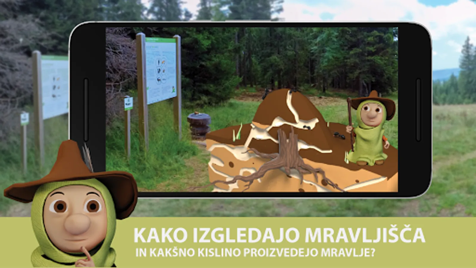 On those boards on the Dwarf Learning Path where you will find a locator, open the application and scan the locator. Find the dwarf in the area. He'll be hiding somewhere in the middle of nature. Press it with your finger and it will tell you more about your animal friends and the secrets of Pohorje. Don't forget to turn on the sound on your phone!