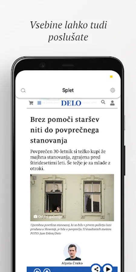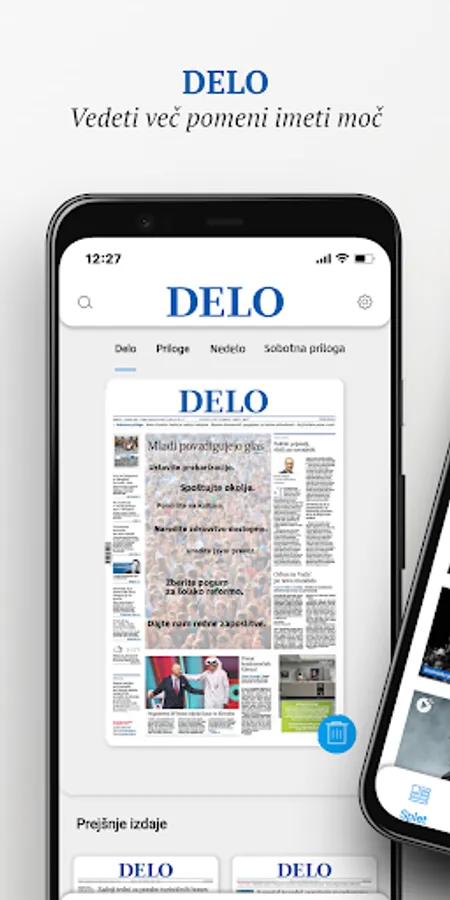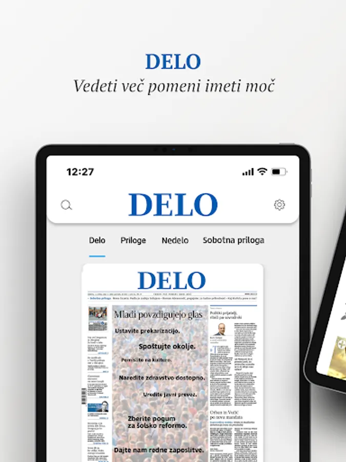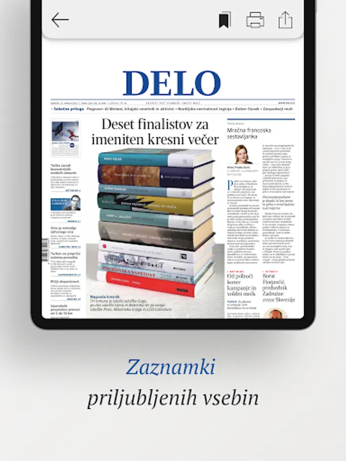 Delo, as the central and most widely read daily news newspaper, has been co-creating the Slovenian public space for more than 60 years. With numerous content sets created by quality, credible, professional and responsible journalists, he monitors, illuminates, explains and comments on the broadest social and economic-political events. With the app for tablets and mobile phones, you will be able to access the contents and supplements of the Delo newspaper in front of everyone else: tomorrow's issue will be available to you the evening before the issue (from 10 pm). Experience the modern user experience of reading the newspaper Delo! You can also read downloaded numbers without an internet connection. New: A completely redesigned app delivers an improved user experience. Reading the digitized version of the edition is possible in two ways: in the online version and in the form of a newspaper page with the option of viewing an individual article, where you can adjust the font size for smooth reading even on smaller screens. You can now also listen to the newspaper as we have added text-to-speech conversion to the articles. Advanced search engine allows you to search for editions by keywords, names or. I understood. Integrating a website into the app allows you to follow all the latest information and articles without having to open a browser. There is also the option of bookmarks, as you can bookmark and archive your favorite content. The agenda-setting Slovenian daily newspaper Delo is available on mobile devices: Be the first to read the latest edition on your smartphone or tablet. Choose from “what we print is what you get” PDF version of tomorrow’s printed edition — including all daily supplements—, or HTML-based version with live news, bringing users Delo’s content from tomorrow’s edition and web page. Notice to non-Slovenian speaking users: this application and all of its content are available in Slovenian only.
