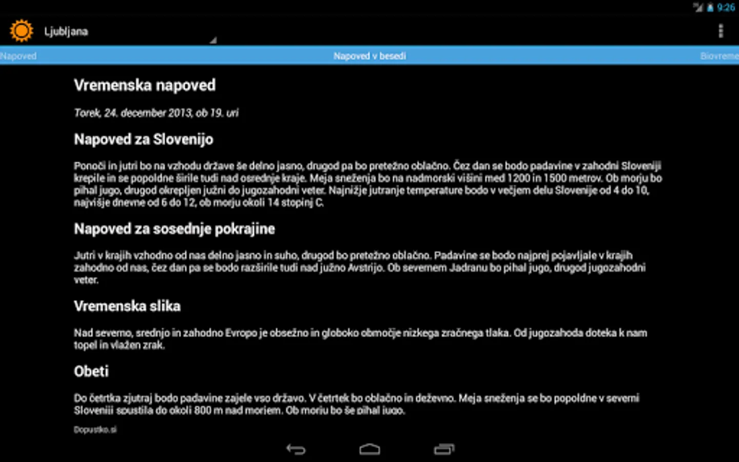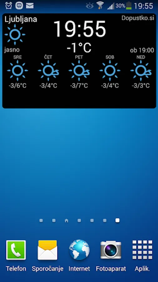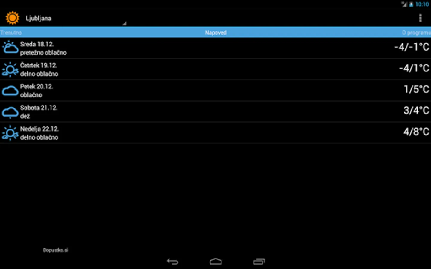 5-day weather forecast, weather conditions, current time, 4x2 widget, weather forecast in a word, biovreme, warning, rain and snow (not on the ski slopes).